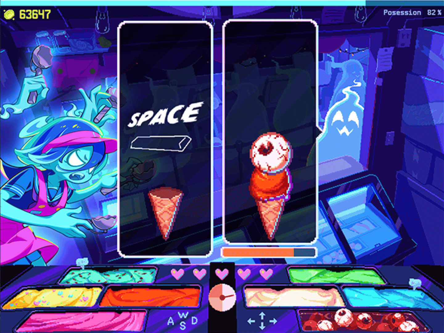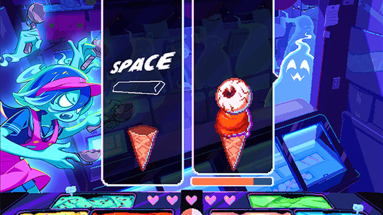 Haunted Ice Cream is a fast-paced time-management and rhythm simulation game where you play as a ghostly ice cream vendor serving spooky treats to restless spirits. Press the right keys in perfect timing to scoop and stack eerie flavors before your possession meter overflows, all wrapped in vibrant neon pixel art and ghostly charm.
