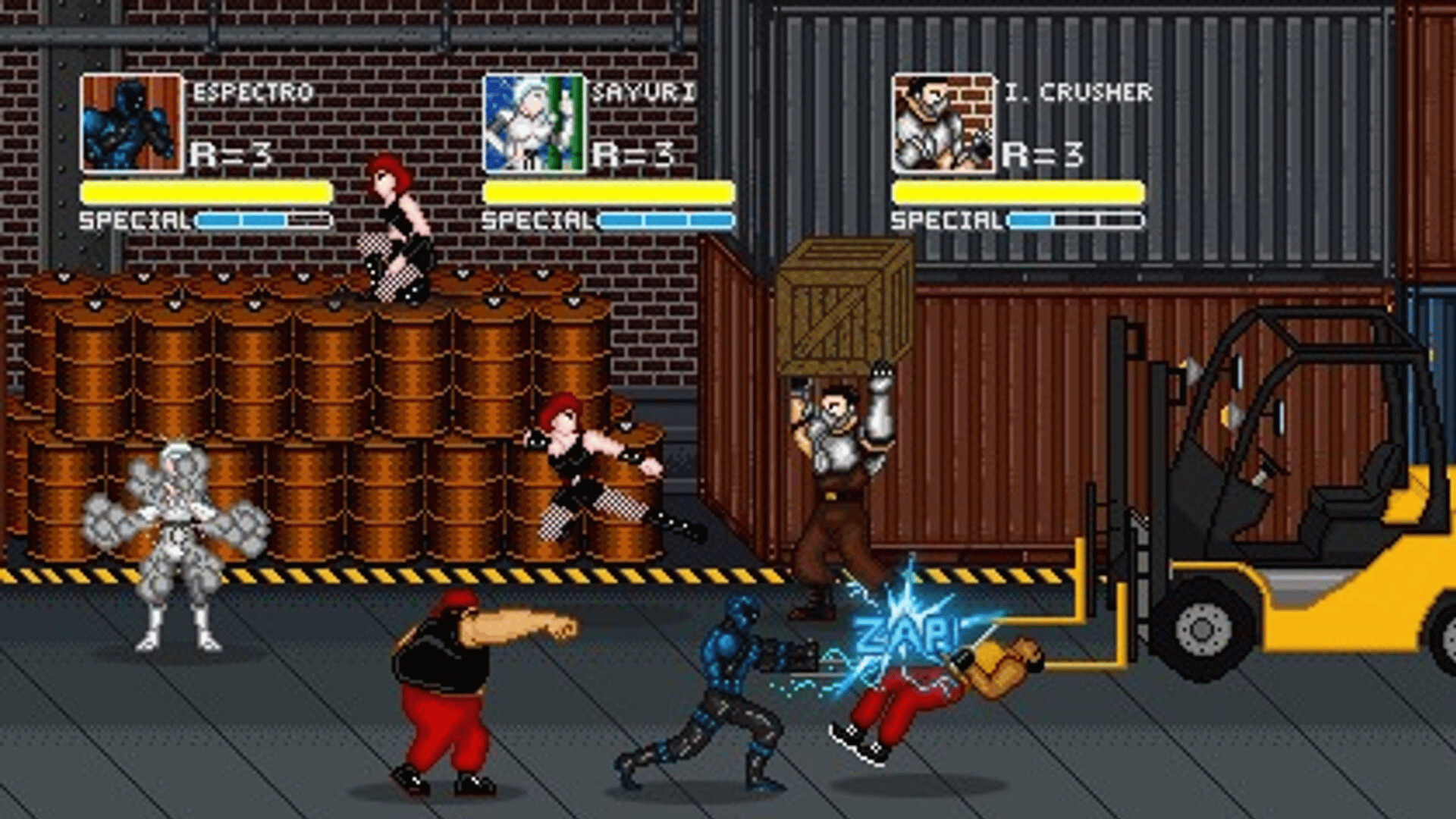 Espectro - The Fighter's Focus is a beat 'em up action game with retro visuals and exuberant pixel art. Espectro and his allies, Sayuri and Iron Crusher, face hordes of enemies and powerful bosses in their quest for justice.