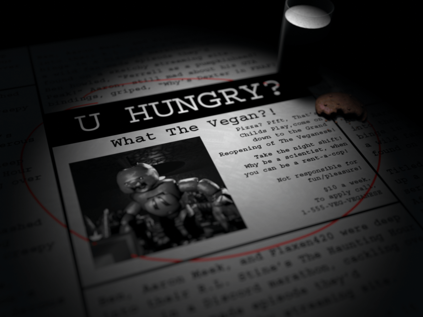 It's 5 Days before Christmas, Santa Claus is trying a new Vegan diet to lose weight! He finds a shift at bad vegan restaurant, he takes the job for employee discounts at the food bar, but he gets pursued by creepy Mascots of the night. Stay alive, or it's your funeral...