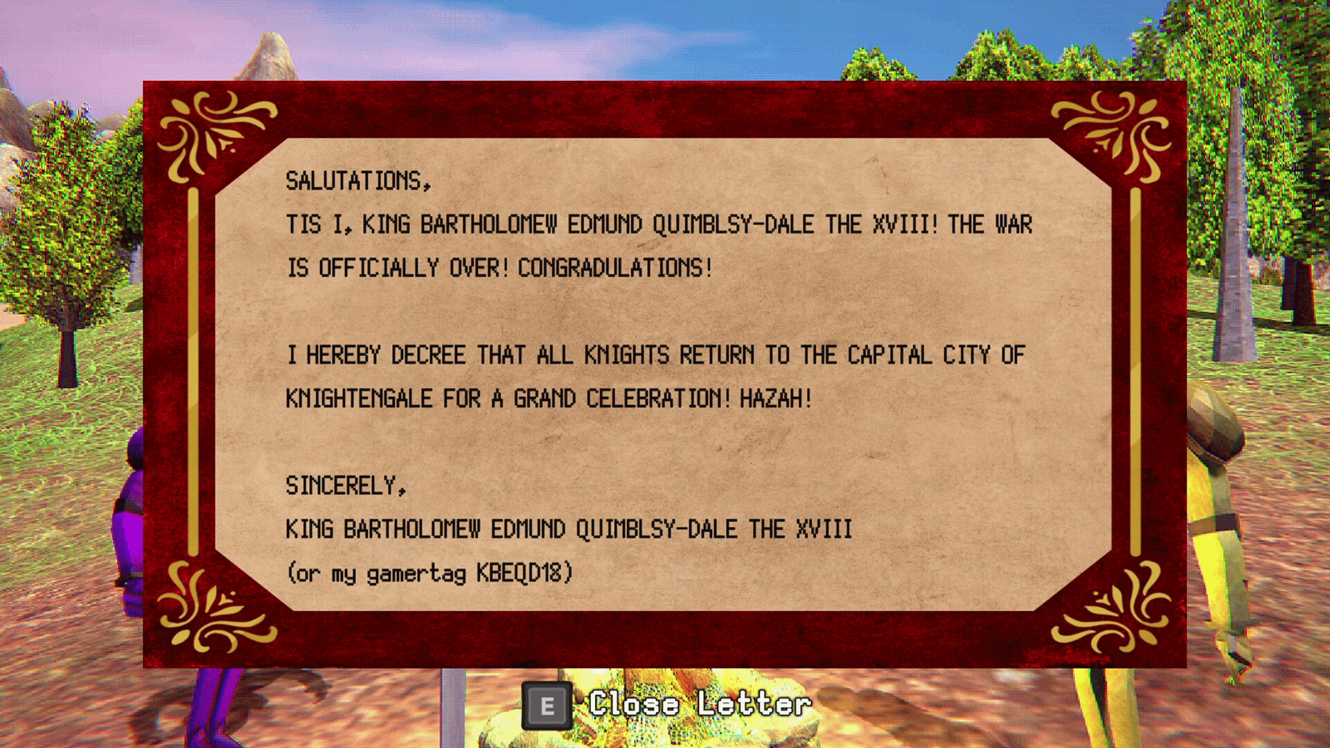 War is over! Limp back home collecting fantastical sticks, reading letters from your wife as you travel the lands one leg at a time. Meet a colorful cast of knights and uncover the kingdom’s conspiracy one limp at a time in this comedic narrative adventure.
