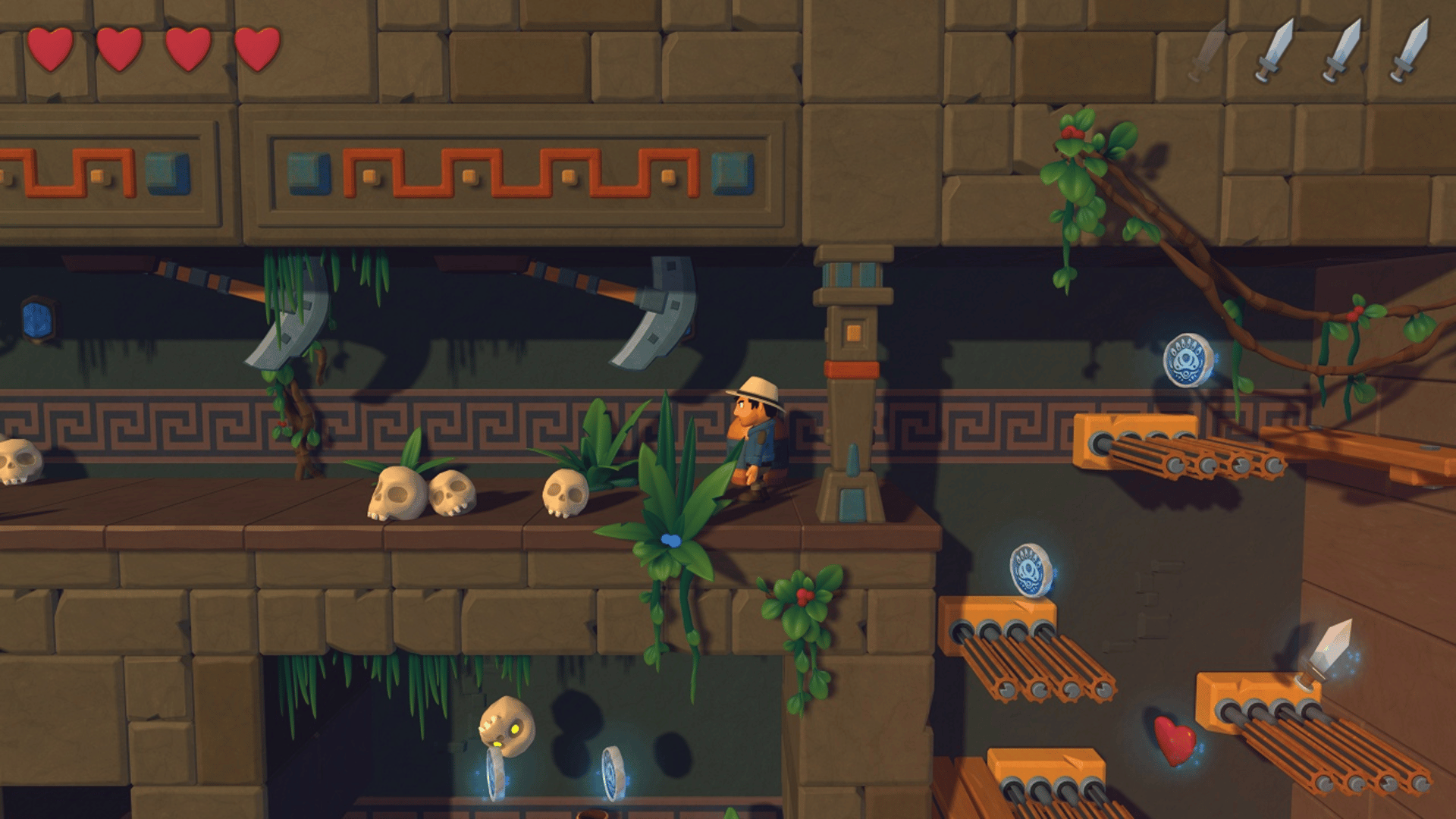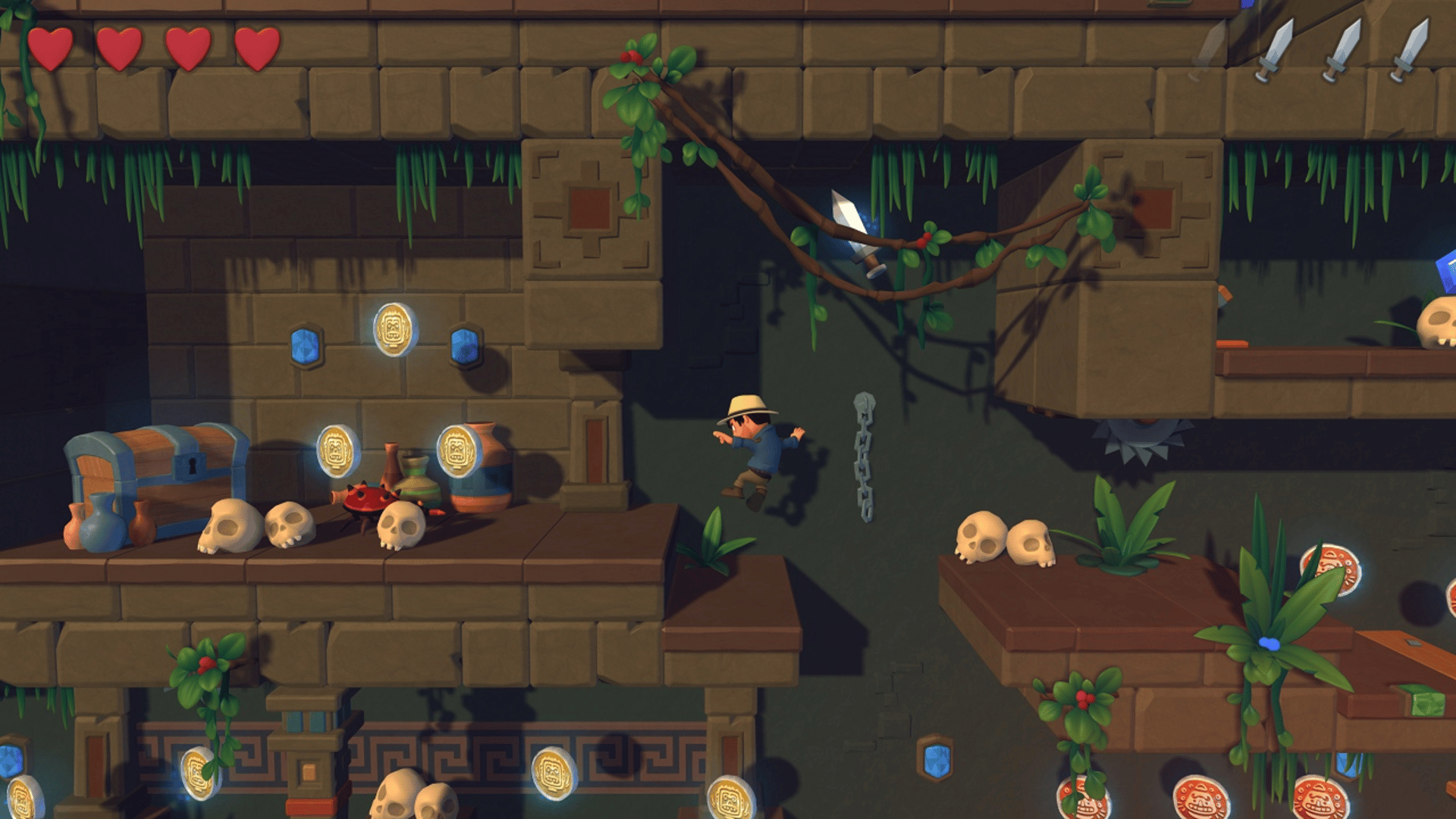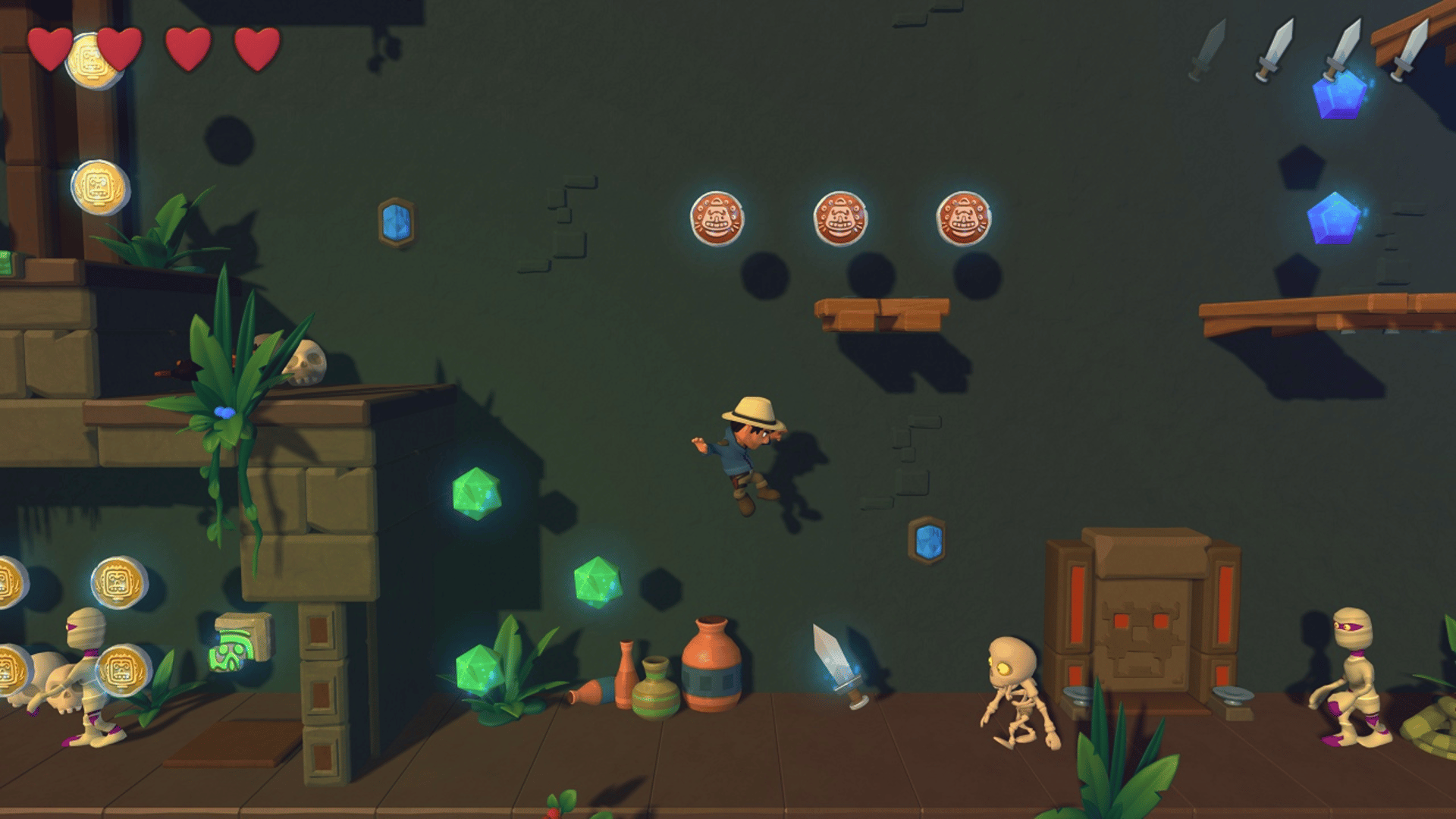 Pyramid Quest 2 is an exploration and treasure-hunting game inspired by classic platform games. The goal is to find the three parts of an artefact and open the gate to the next level while collecting diamonds and coins. In this adventure, the player finds himself in a pyramid in the jungle surrounded by dense vegetation. Traps, obstacles, and enemies from old days make the quest very dangerous and challenging.3D graphics packed in a nice graphics style, great 2.5D levels and proven gameplay gives you hours of fun.