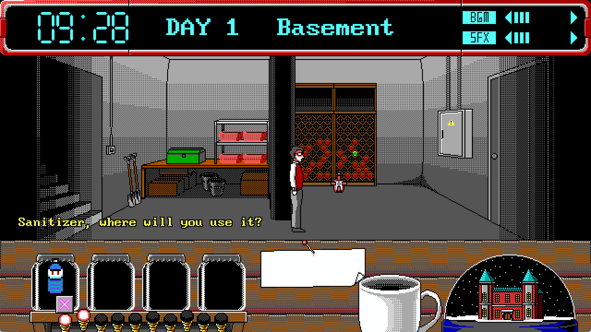 A 90s style point and click game. Blizzard. Stranded. Eight days. Enemies — kill them all.