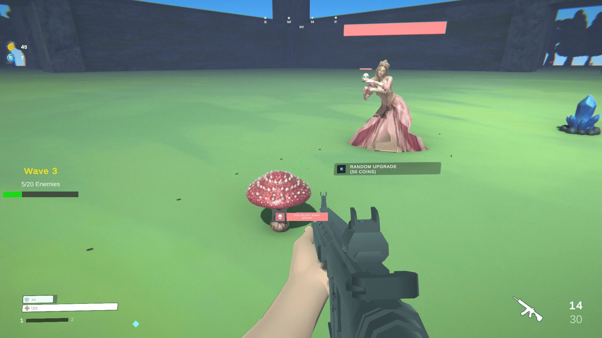 Stand alone against the endless horde. In this medieval FPS roguelike, defend your princess against waves of whimsical monsters. Slay, earn coin and gems, upgrade your power with the mystery mushroom, and become a legendary Crusader. How long can you survive, brave knight?