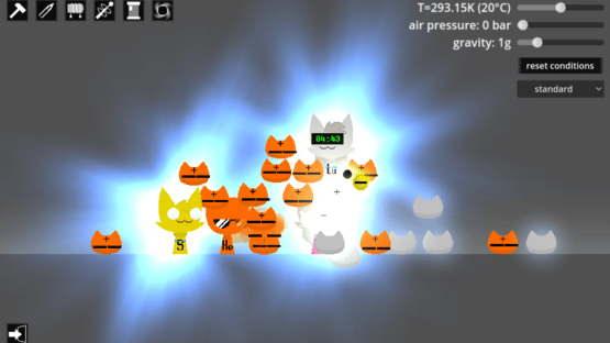 Welcome to the Cattopia National Laboratory's Big Box Of Catto Research, where you can play around with all sorts of elements in the form of little creatures known as Element Cattos and see how they interact in different conditions and environments.