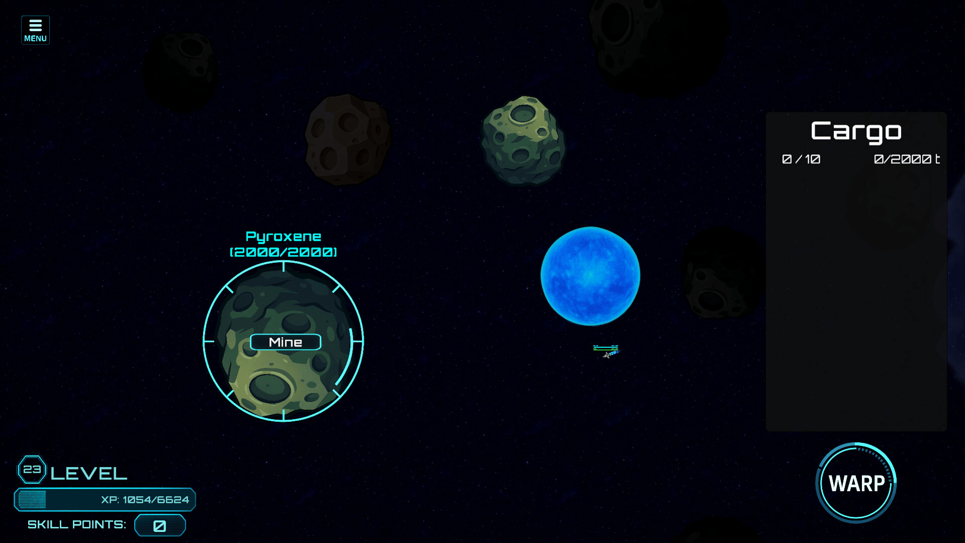An idle space mining simulator that lets you scan, extract, and refine asteroids while upgrading ships and managing resources.