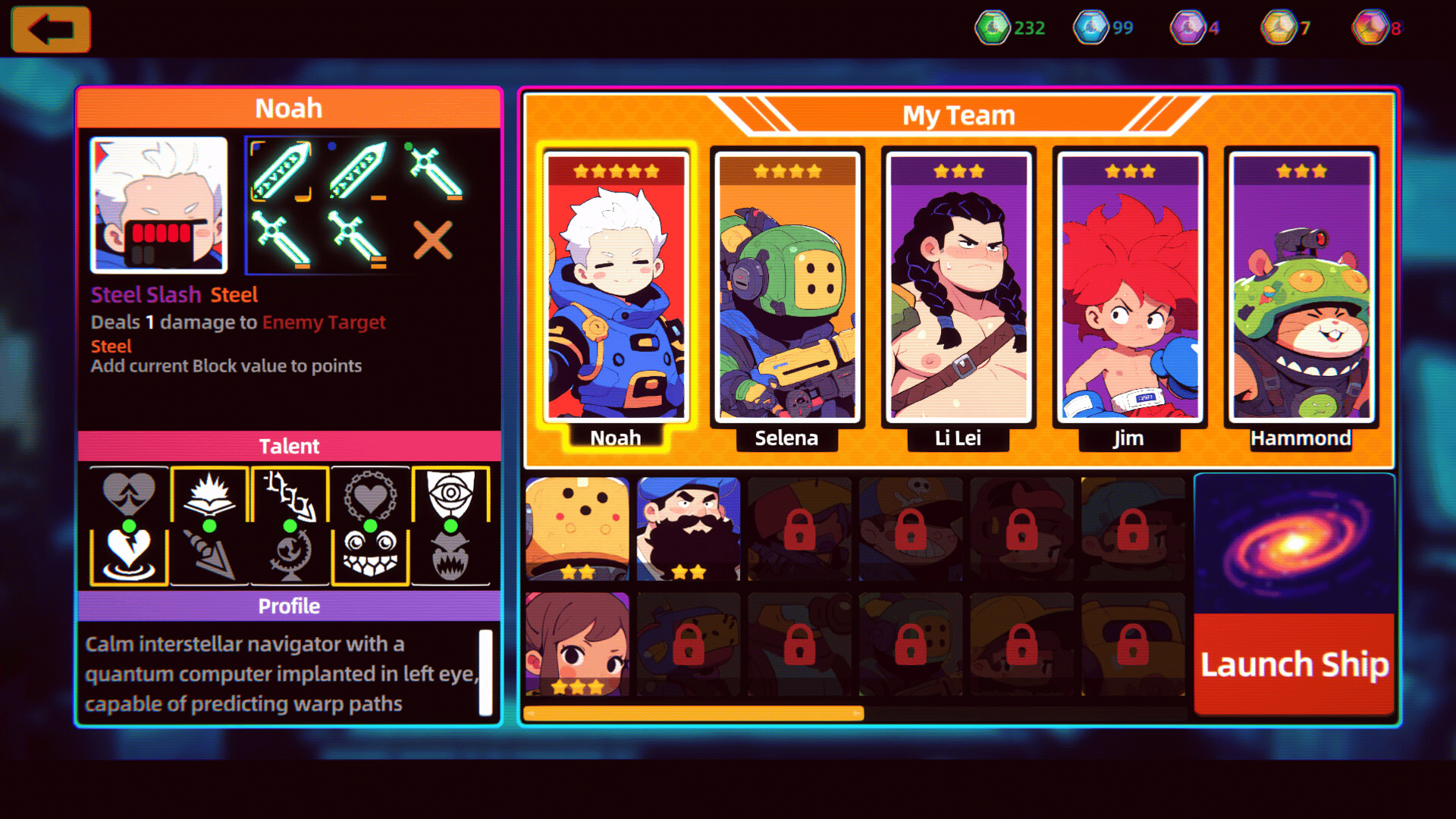 This is a turn-based strategy adventure game. Assemble a five-hero squad, each with unique strengths. Collect mysterious artifacts, build potent hero abilities, defeat powerful monsters, and eliminate galactic threats.