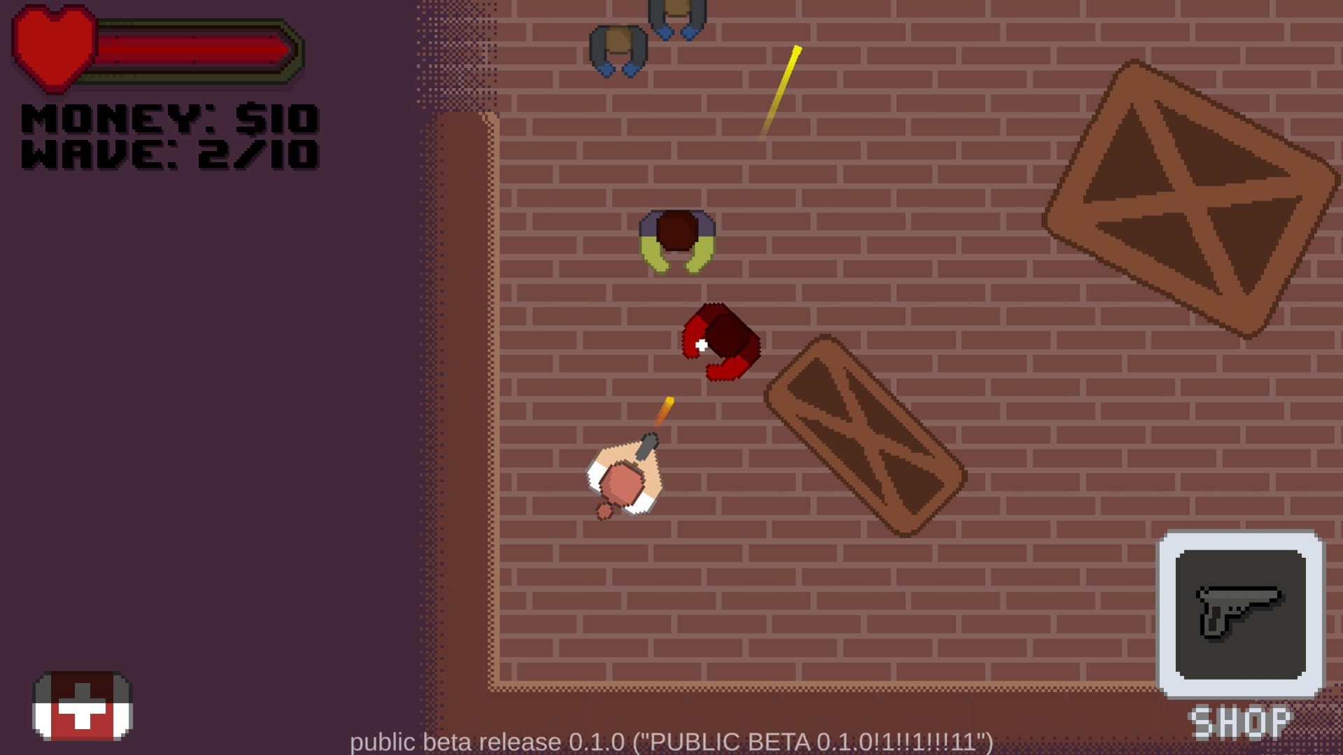 A top-down 2D pixel art zombie shooter. Featuring 20+ enemies, 7 upgradeable weapons, 6 active abilities and passive perks, unlockable player skins and more!