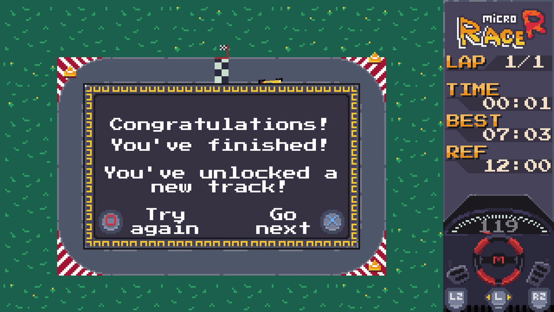 Get ready for high-speed, precision racing on tracks that fit in your pocket! In Micro Race R, every millisecond counts as you master 11 unique, single-screen circuits.