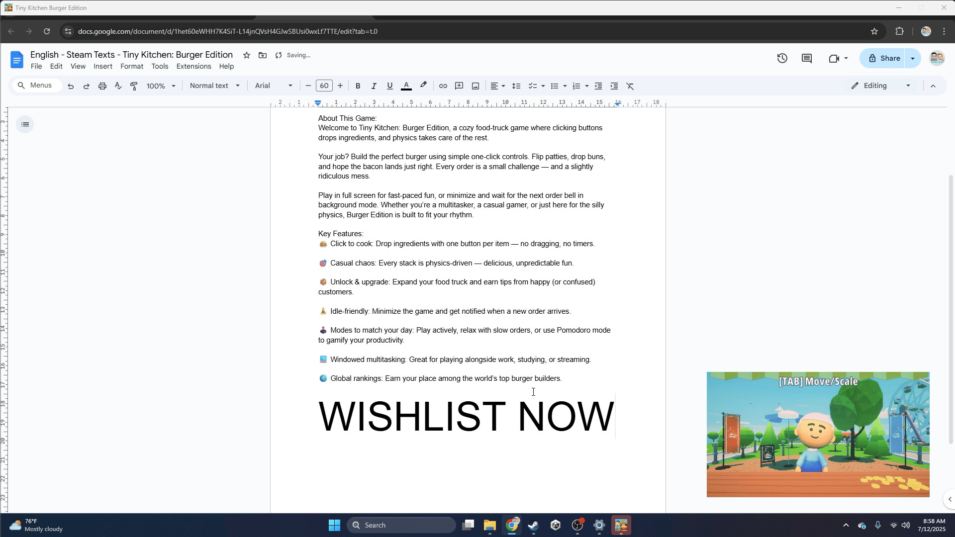 Stack, flip, and drop your way to burger glory in this cozy physics-based cooking game. Whether you’re actively grilling or letting orders wait, Tiny Kitchen is perfect for focused breaks and relaxed chaos.