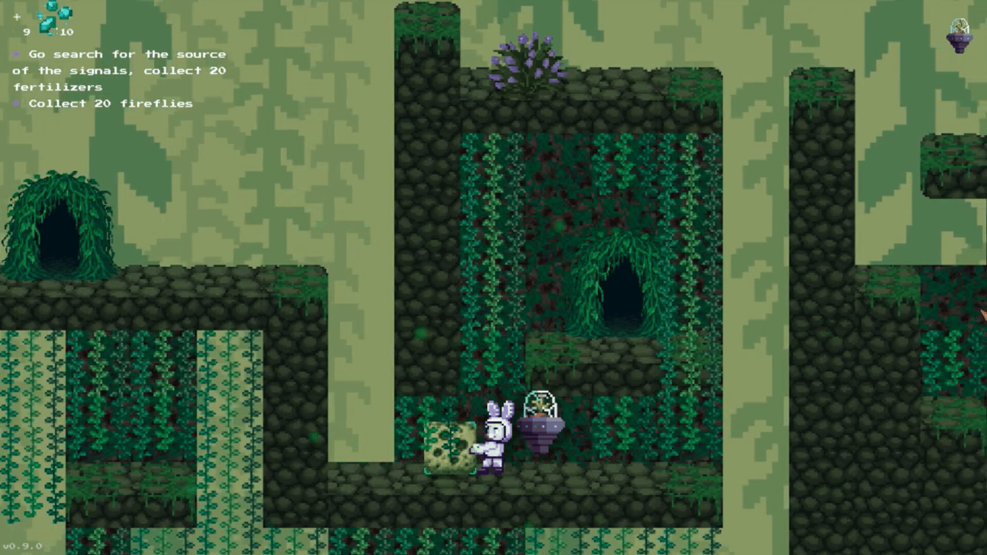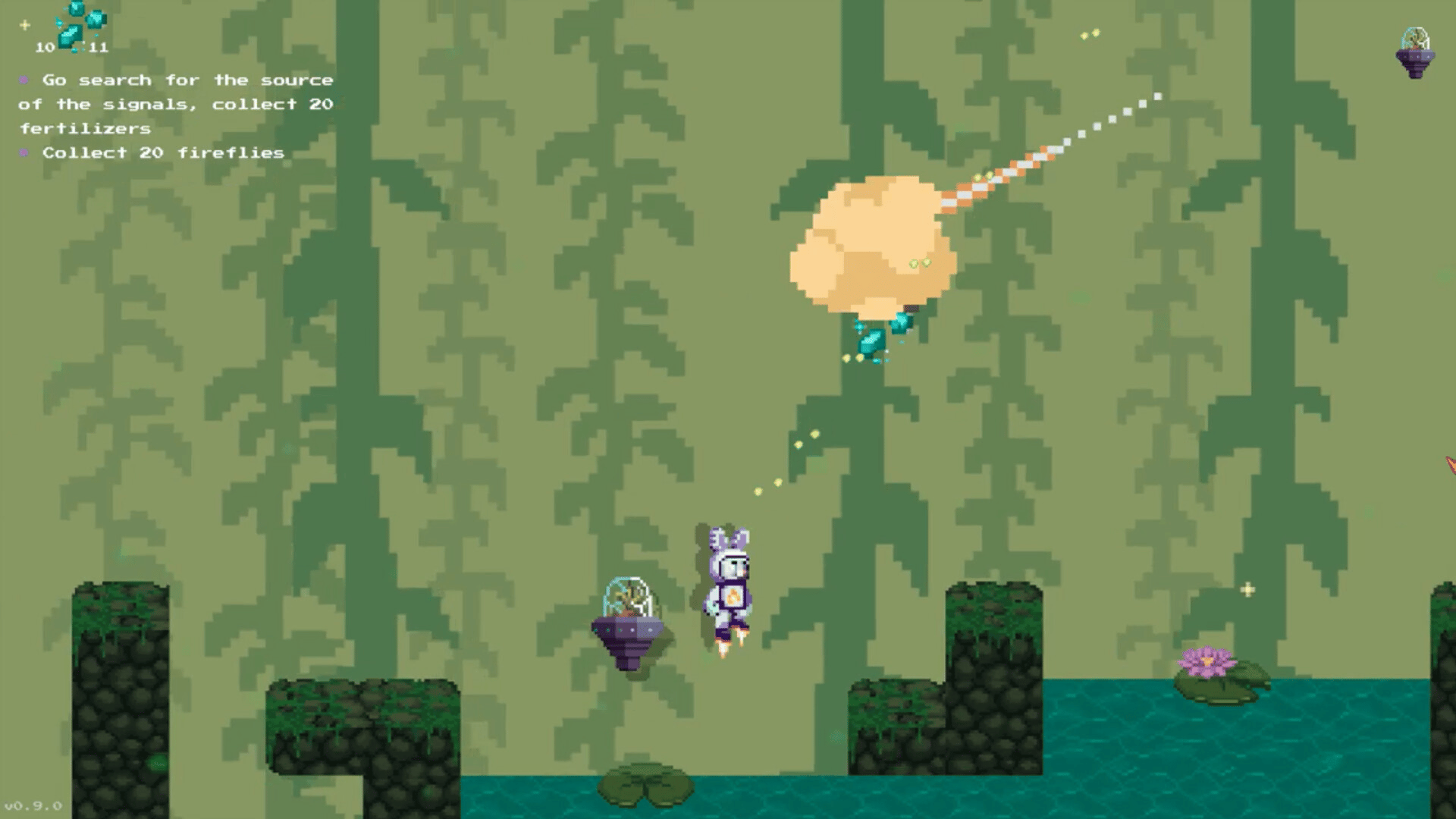 Embark on a pixel adventure with Ponchee the bunny in "Bunny Space Odyssey: FlopHop". Solve puzzles, protect plants, and uncover deep mysteries with Usagi-01 on an uninhabited planet.