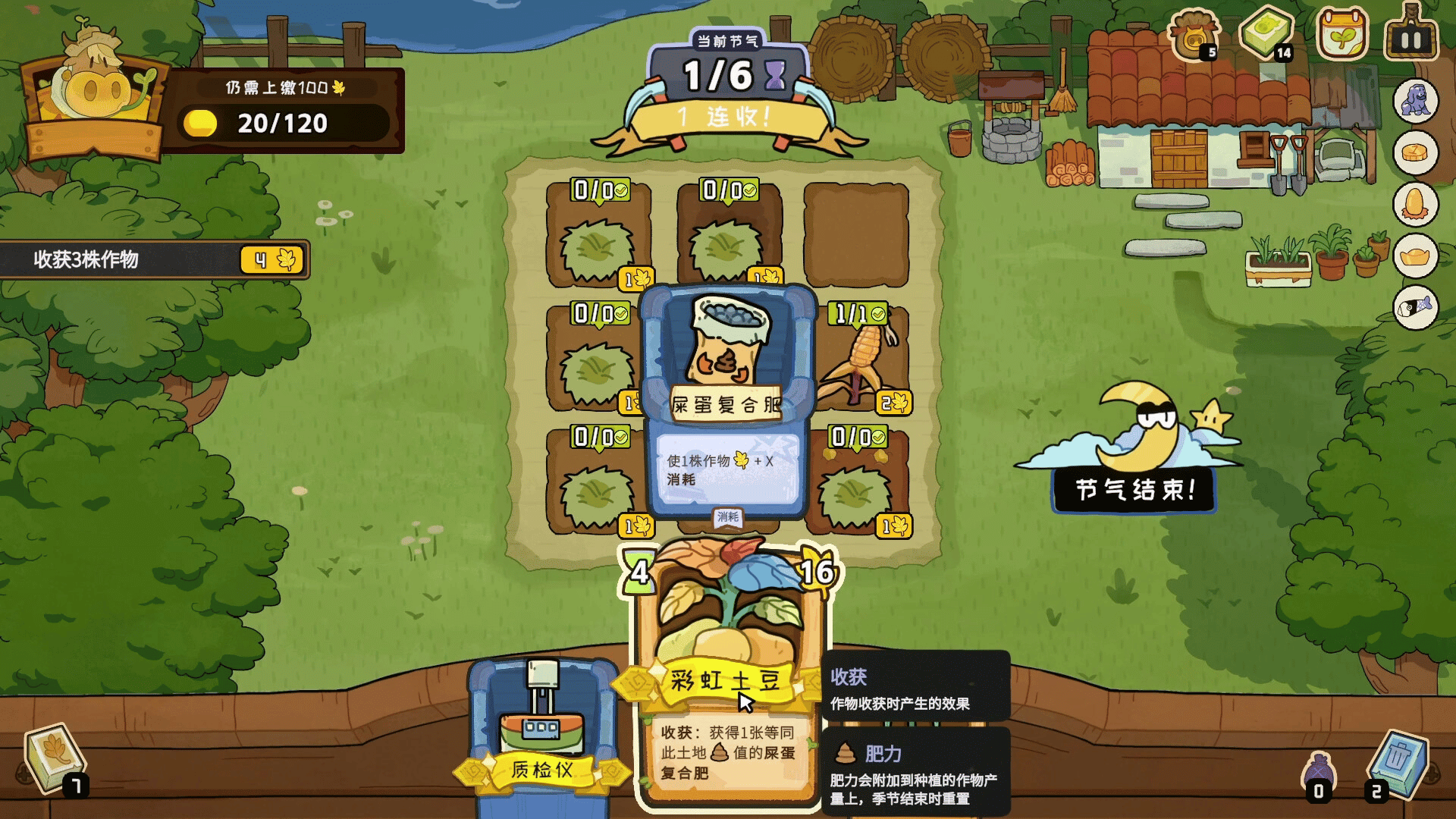 Within a seasonal journey of harvest, plan limited fields, plant diverse seeds, reap bountiful crops, and amass wealth. Don't forget to manage your warehouse, select powerful treasures to build your deck, and become the ultimate farmer. Are you ready for this strategic challenge?