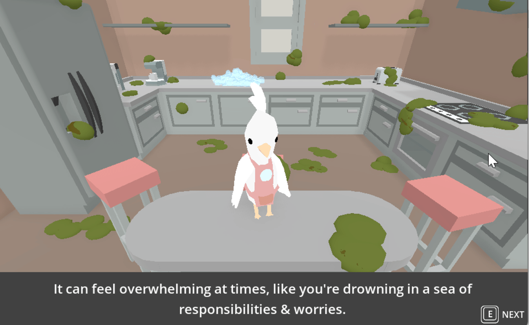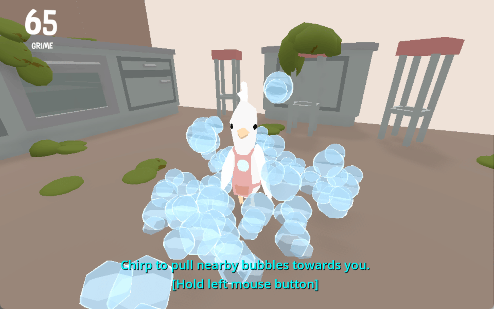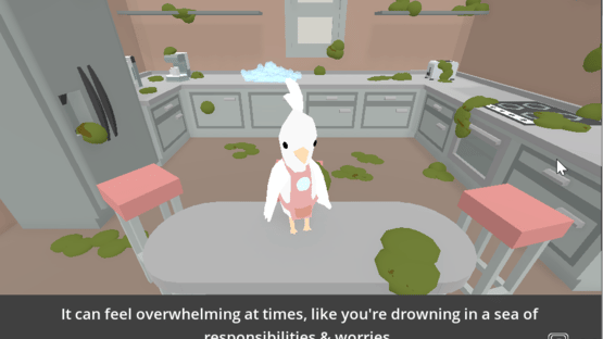 Jarnathan teaches you about cleaning and dealing with life's messes in this feel-good physics-based game. Life is overwhelming and messy sometimes. This is a little feel-good cleaning game where you herd your soapy bubbles to clean a grimy kitchen. Flap your wings to blow the bubbles around.