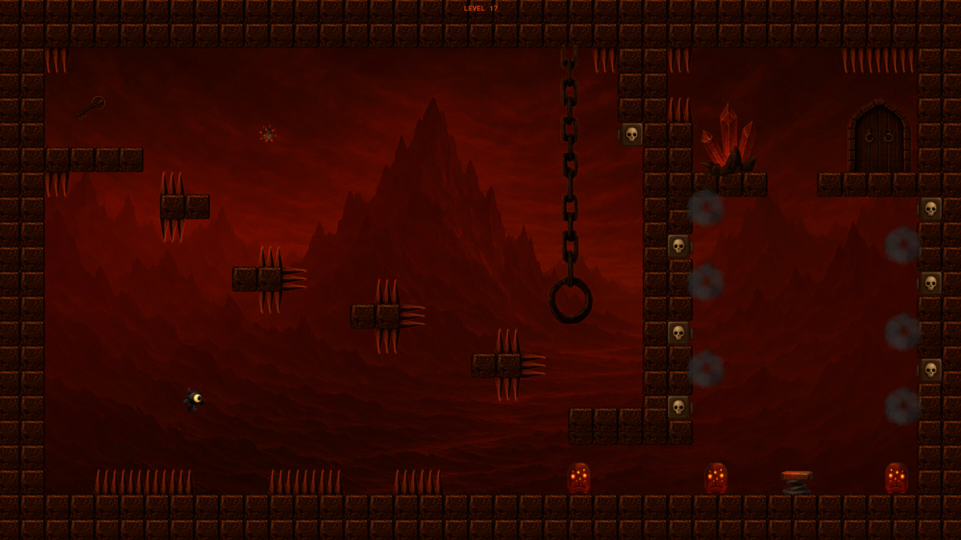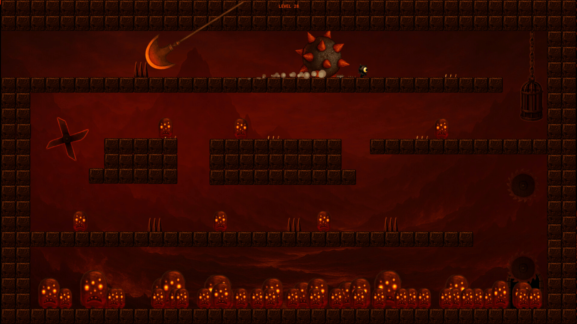 A brutal 2D platformer with 48 hellish levels, deadly bosses, and unforgiving traps. Beat the game to unlock Hardcore Mode — a merciless one-life run from start to finish.