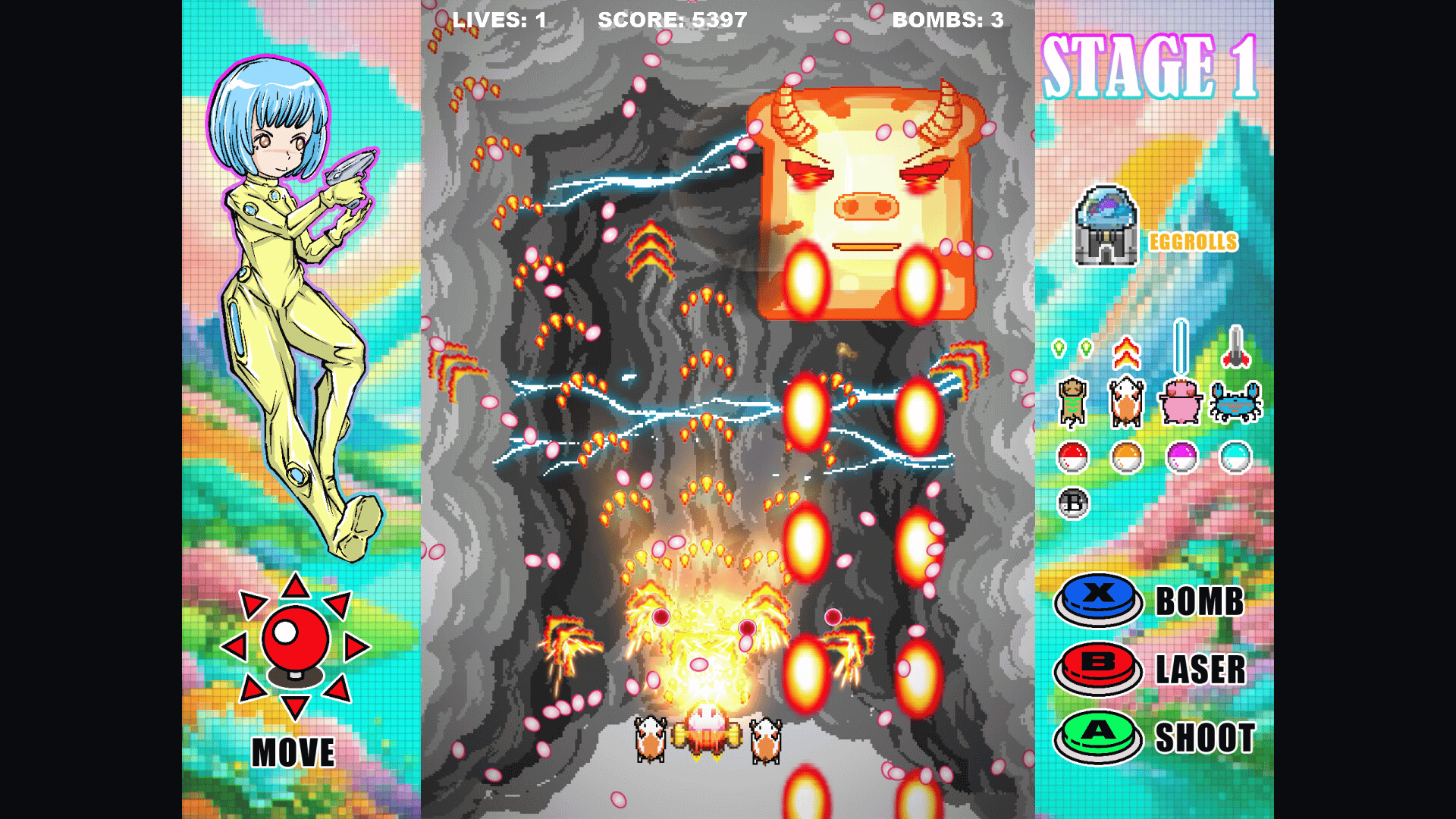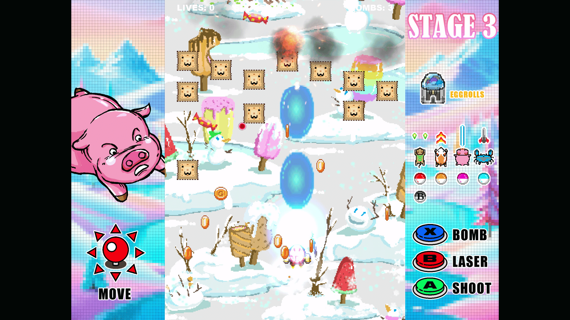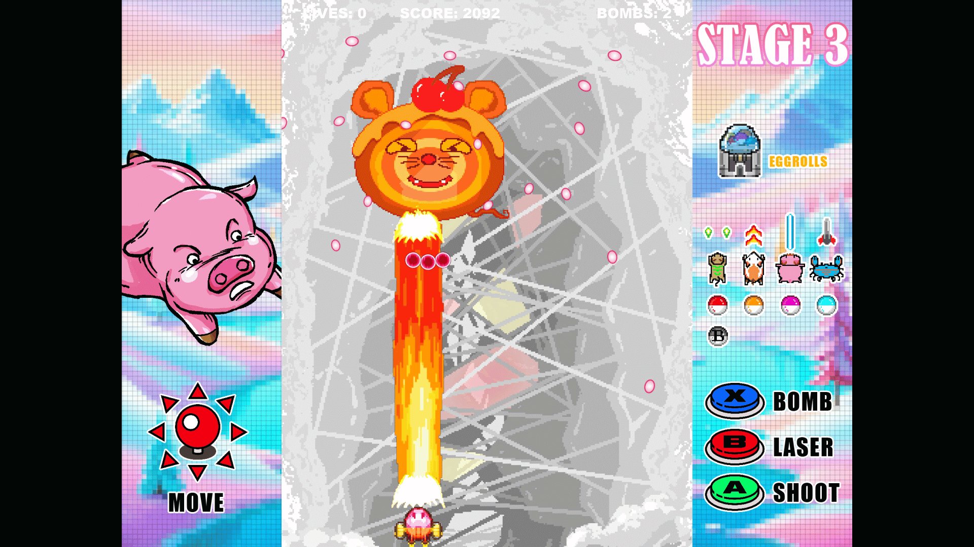 Eggrolls Shoot is a retro inspired arcade shoot ‘em up game. Our game is all about the adventure of saving the animal world.