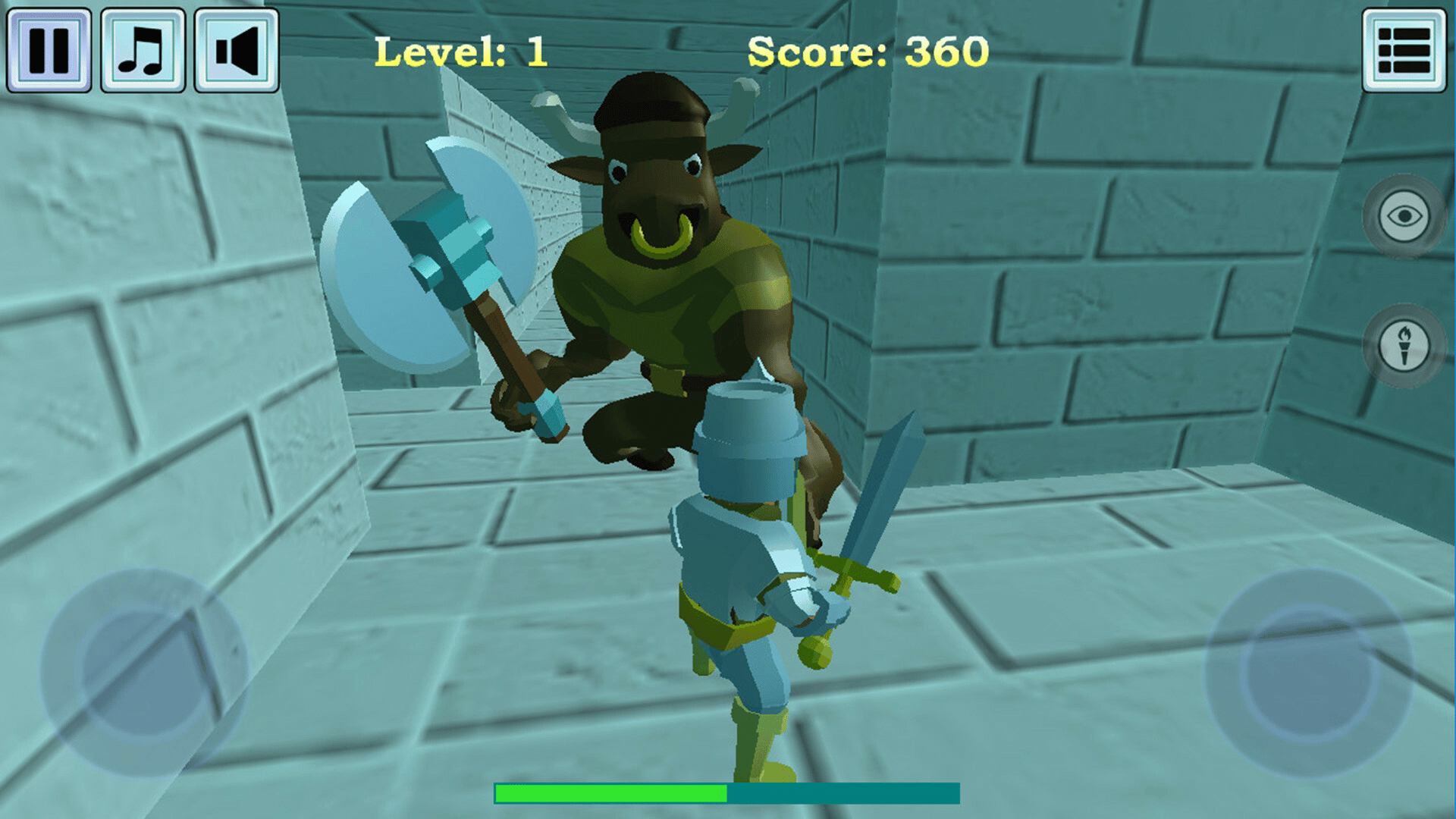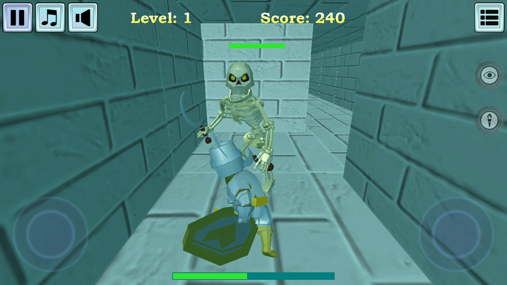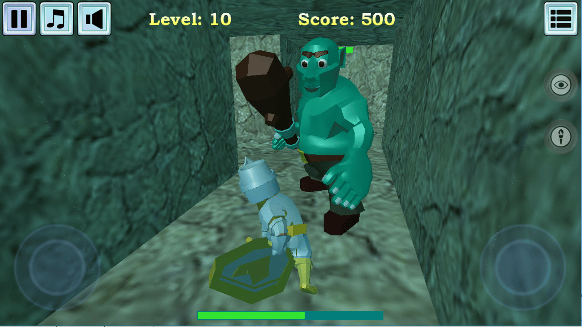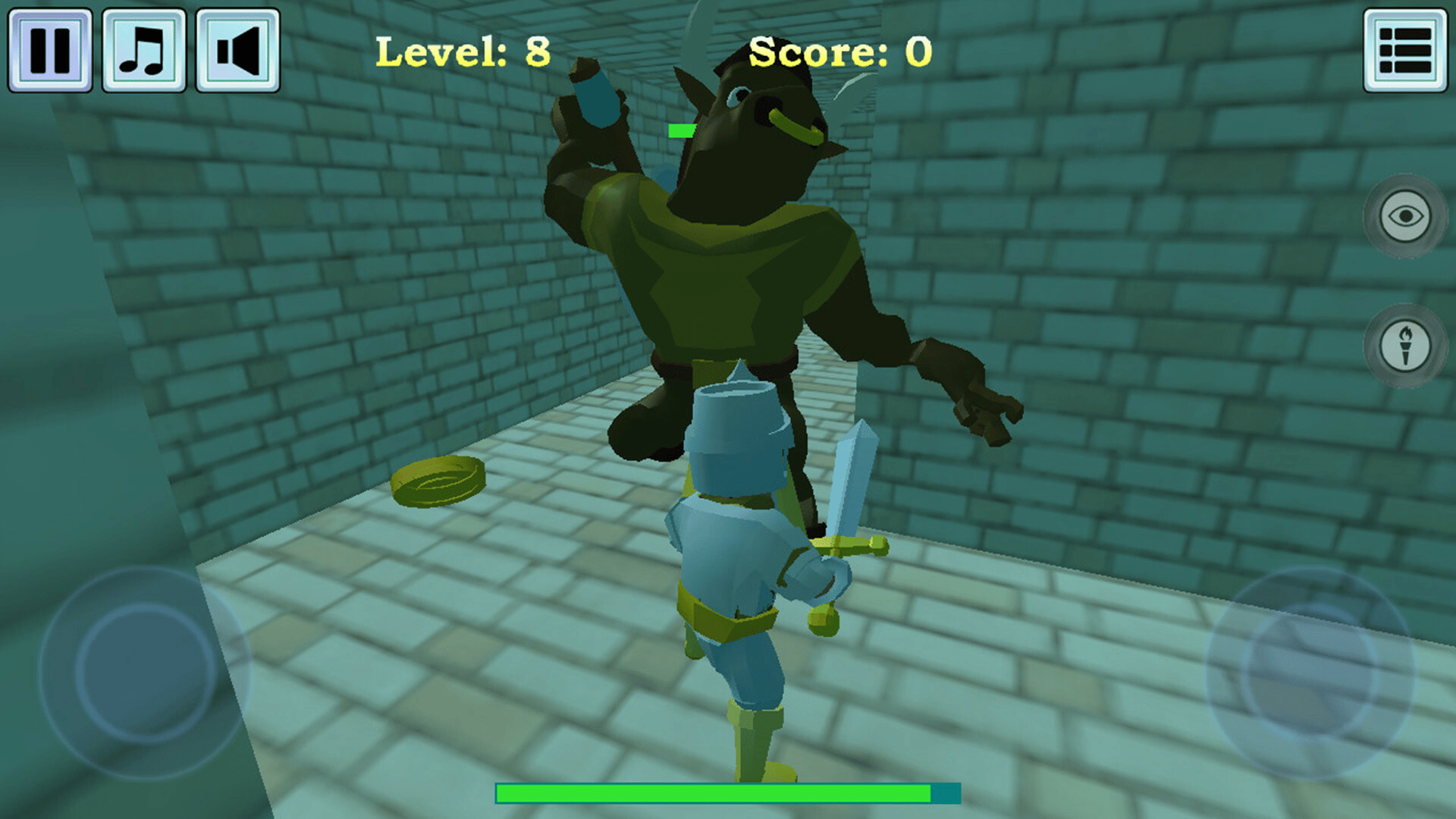 Find a way out of the dungeon. Collect treasures and earn points. Fight the dungeon guards. Potion vials restore health.