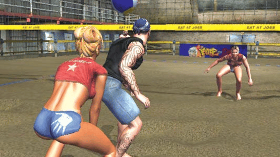 Outlaw Volleyball is the second game in Simon & Schuster's growing Outlaw franchise. As the title suggests, you play various games of volleyball with shady and dirty characters, from a slutty biker to an ex con to a pair of strippers. There are sixteen players in total. Each character has his or her own unique personality, strengths and weaknesses. There are four different modes you can compete in; Exhibition, which is a standard volleyball game, Tour, which is the career mode that spans fifty different events, and Drills, which are sort of like practice games that awards points you can use to improve your player's abilities. The fourth mode is Xbox Live enabled, allowing you to play with people over the Xbox Live service. There are ten different courts to play on, each one with it's own backgrounds and animation. You can play on a beach, at a carnival, or even in a prison. Outlaw Volleyball utilizes the same momentum feature first seen in Outlaw Golf, which allows you to earn "beating tokens" that you can spend on beating up the other team. If you are doing lousy, beating up a member of the other team refills your momentum meter, allowing you to come back and possibly win.