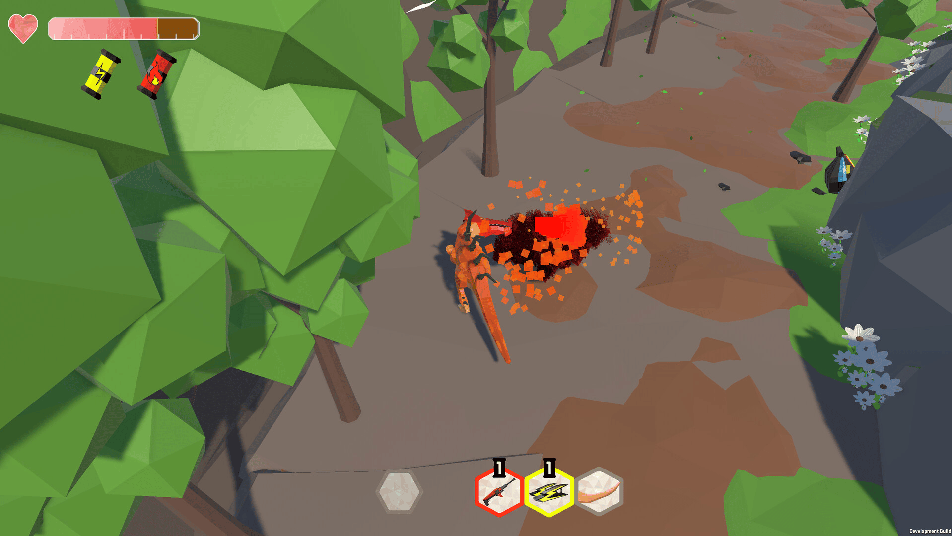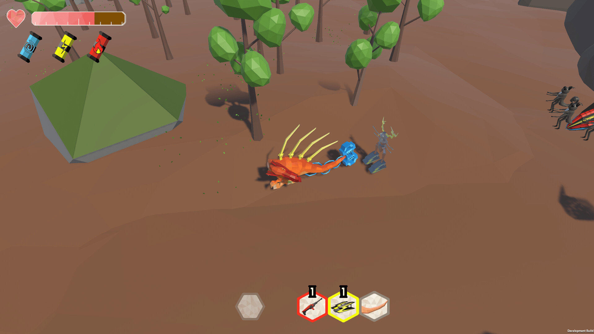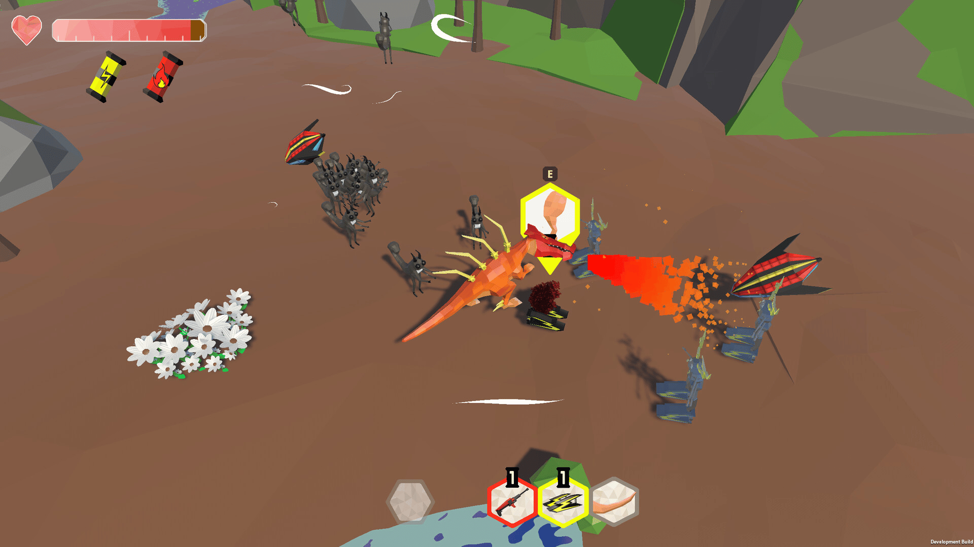Cretaceous Crunch is a 3D action game where you play as a Baryonyx, affectionately named Onyx, who must fight off an alien invasion by eating radioactive spaceship batteries to mutate itself to utilize powerful foreign weapons and defeat the intruders.