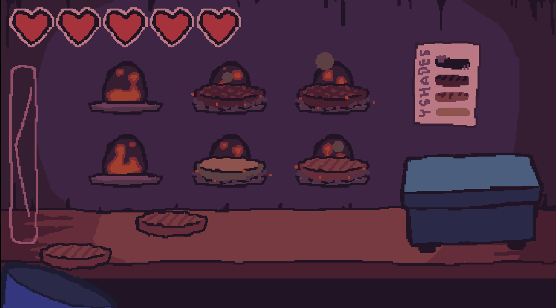 A 2D sit n' survive game inspired by the likes of FNAF with a focus on cooking mechanics akin to Papa's Pizzeria. This game was originally made for the Toxic Terror Gamejam.