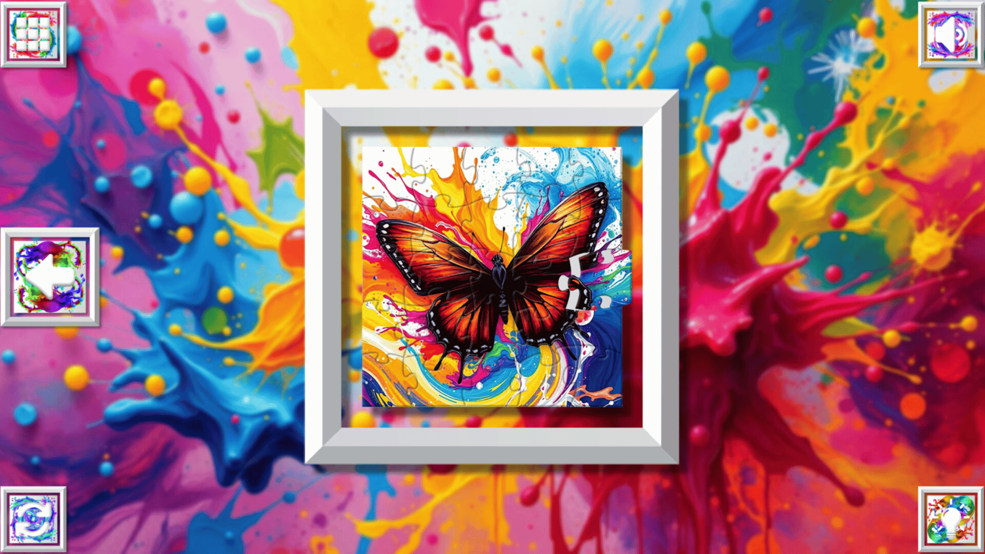 Color Splash: Butterflies is a charming and relaxing puzzle game that will lift your spirits and take You into the world of adorable butterflies and art. Venture into the gallery, where you will find many extraordinary and colorful butterflies paintings.