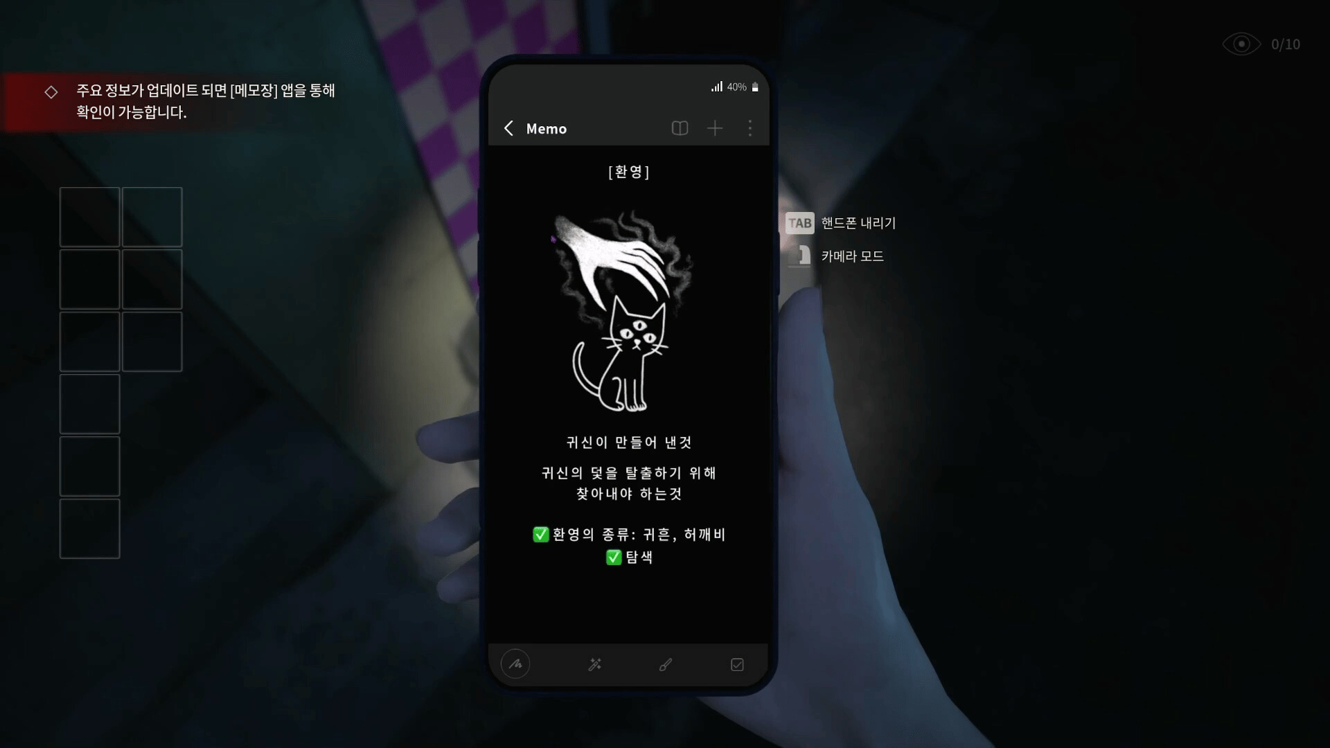 A first-person psychological horror game where you explore a maze-like Korean alley, photograph and identify supernatural 'Demon Traces' from realistic illusions, and escape while evading a relentless ghost.