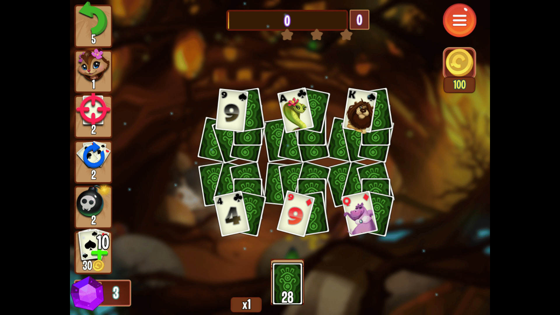 Enjoy the addictive beautiful matching solitaire in the tropical forest and show your card skills!