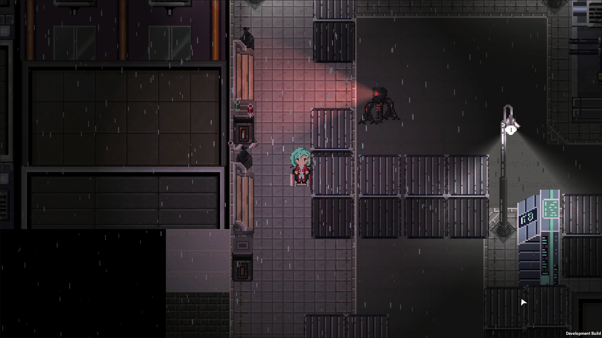Overrust is a 2D narrative survival game set in a cyberpunk universe with a horror atmosphere. The player must use stealth, reasoning, and exploration to overcome environmental puzzles.