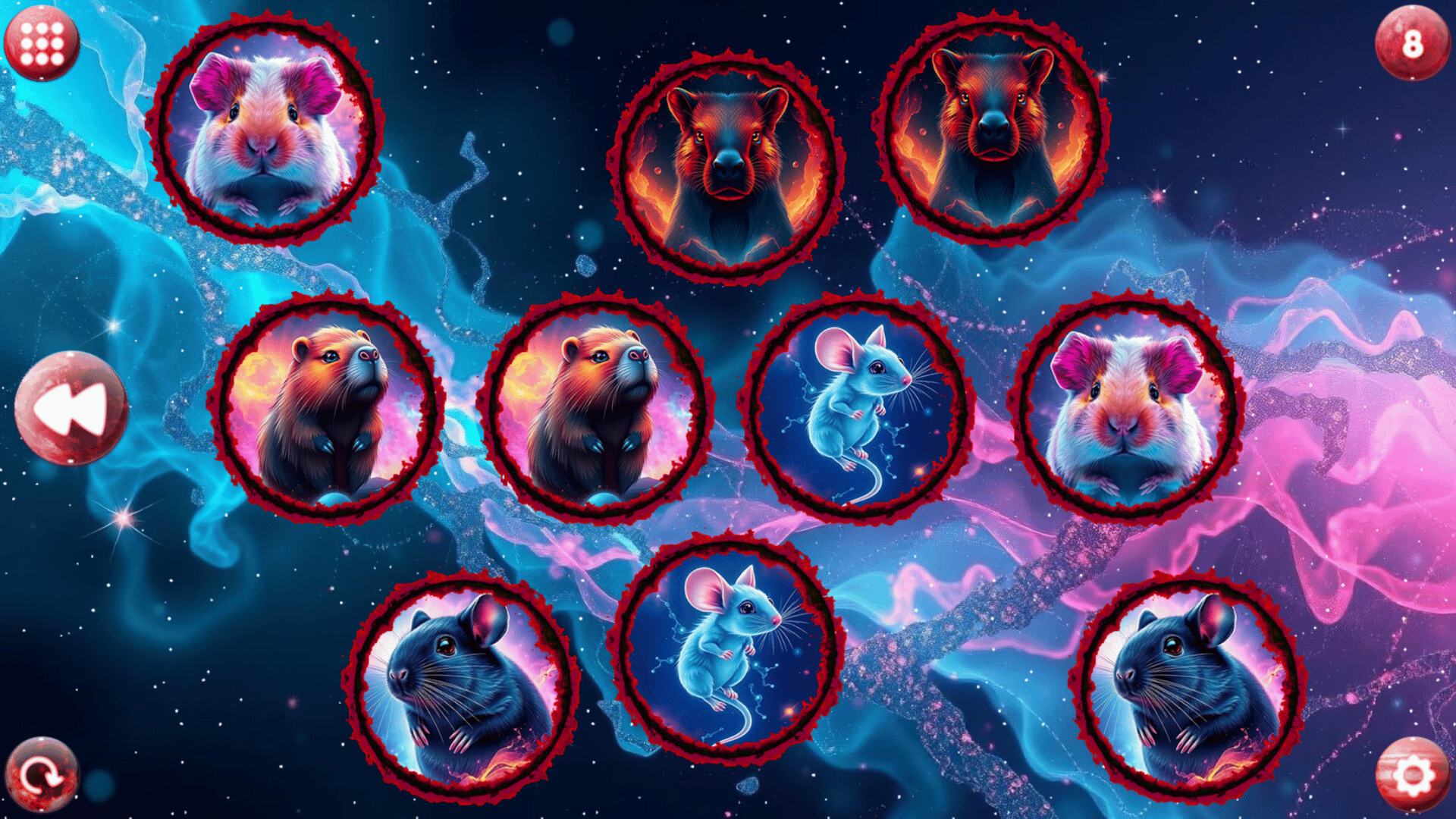 Cute, relaxing memory game where you match pairs of adorable rodents in space