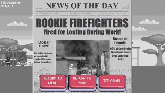 The Earth is under threat from a massive heatwave. The city of Spark is overwhelmed by outbreaks of fire, but a team of heroes will rise to fight the flames and rescue the victims. Immerse yourself in this action-packed and strategic adventure: extinguish the fires, save the items, survive, and become a legendary firefighter in Fire Combat! A platform action game where you control firefighters who shoot water jets to extinguish flames scattered across the levels. You must jump on platforms, avoid traps and pitfalls, and rescue victims along with their precious items, taking them to a safe zone. But be very careful—if you don't complete the rescue in time, the flames will consume everything.