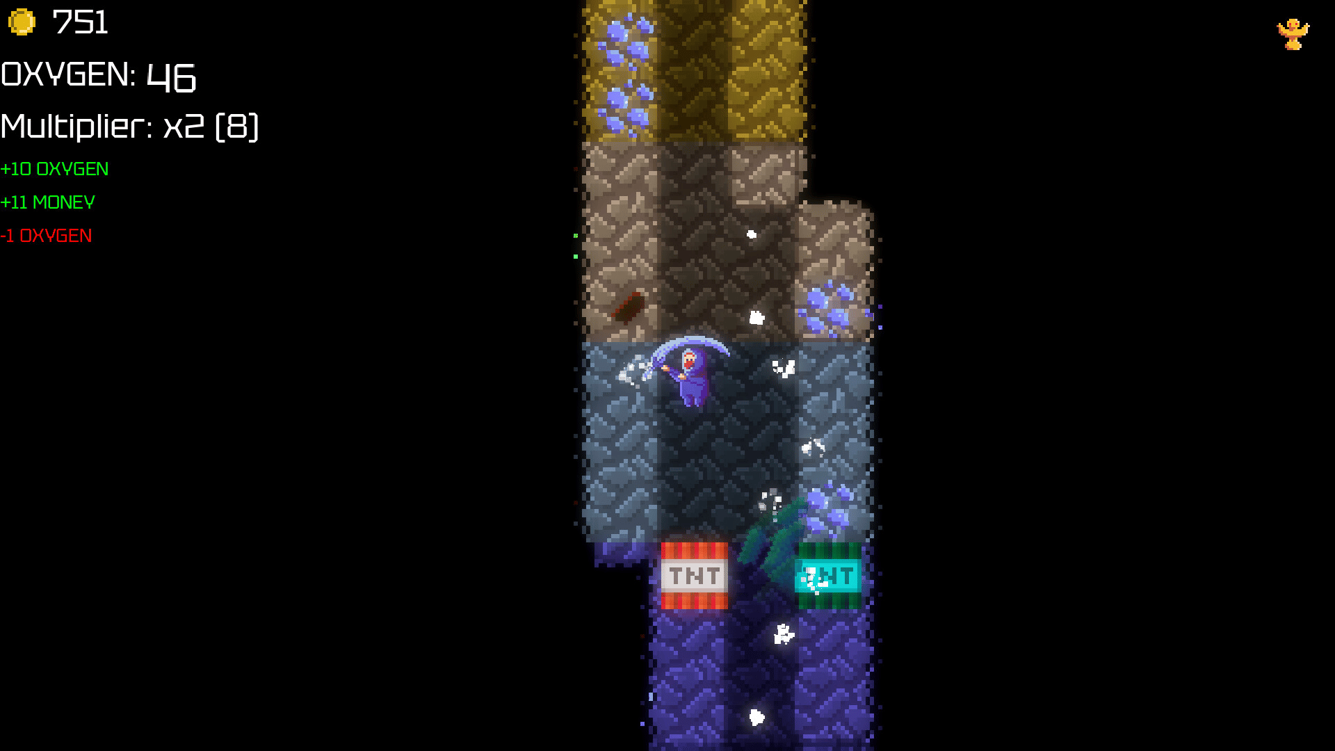 Go down the mine, gather enough resources, and return back to the surface. Make sure that you don't run out of oxygen on your way! Plan every move on the grid carefully, only by returning safely can you progress and uncover even greater rewards.