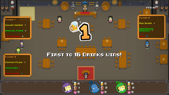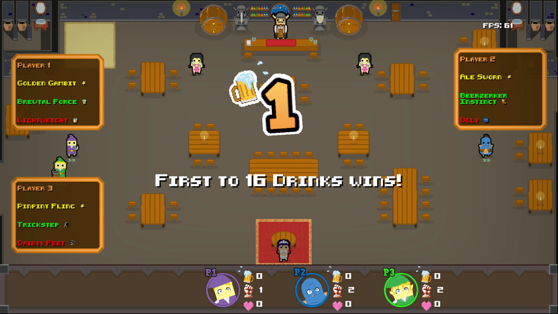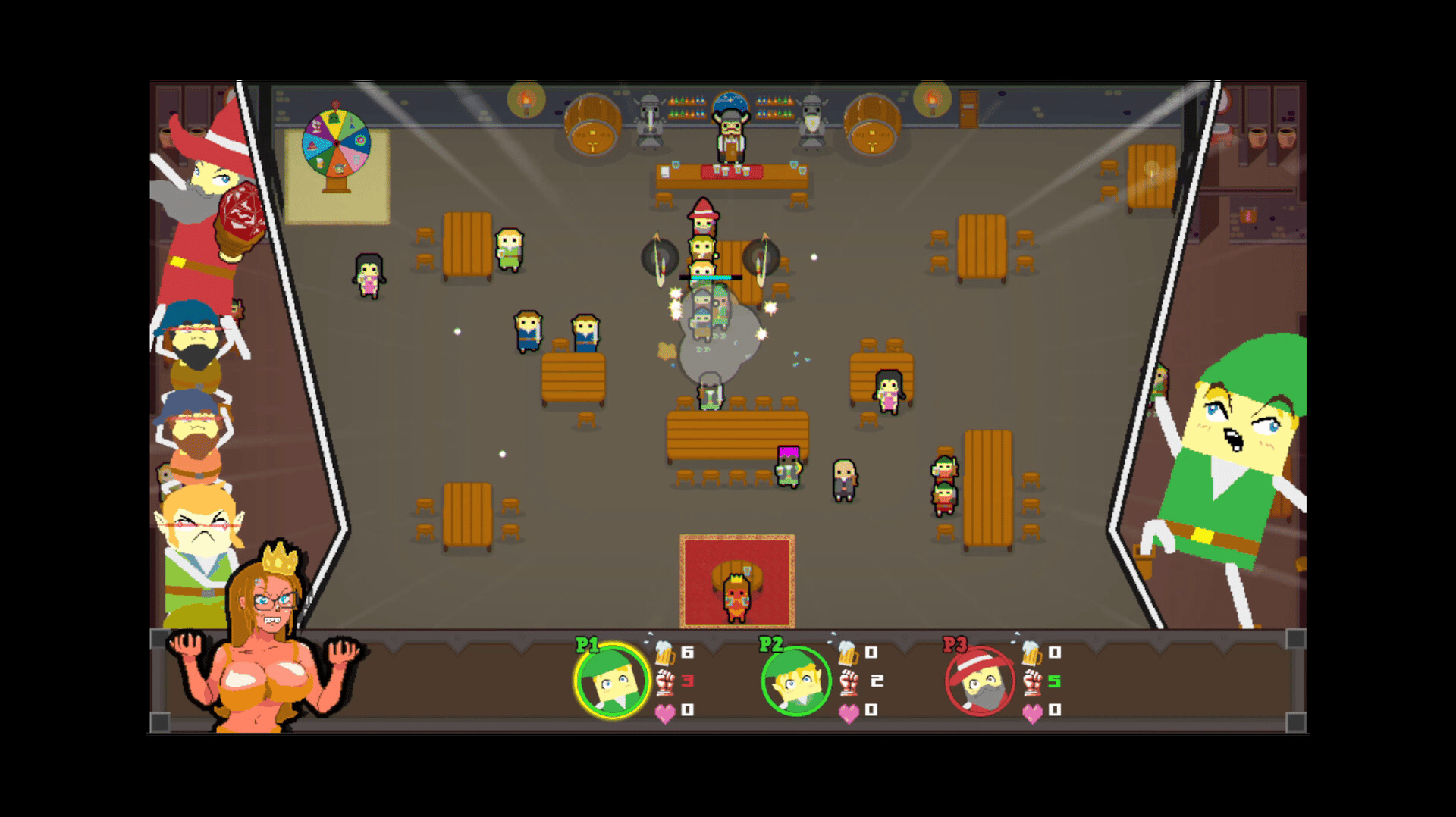 Thirsty Princess is a fast-paced, top-down party game for 2–4 local players where you and your friends compete to drink beer with an impatient and unreasonable princess. Get drunk and slowly lose control while you brawl, steal from and sabotage your friends to win the favour of your princess.