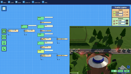 Program traffic lights, barriers, and more to solve your city’s traffic problems! Improve your coding skills by learning to control time-dependent processes with realistic state machines.
