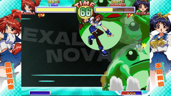 The original anime fighter finally returns! Working with the series’ original designer, Masatoshi Imaizumi, Asuka 120% BURNING Fest. EXALLENT brings back the whole cast from every title in the series. Each character has all of their special moves from past games and also newly added animated special moves as well as the devastating new super moves called EXALLENT NOVA. Background characters are now animated and each stage is accompanied by a new soundtrack by returning series composer, Keishi Yonao. 5 soundtracks are included so you can choose your favorite arrangement before each match. Series vocalist, Reika, is also back singing the new theme song, Do Not. Renowned illustrator and animator from the Urusei Yatsura and Ranma 1/2 reboots, Yo-co brings her stylish 90’s style to the classic Asuka 120% character designs. The story mode is also now fully translated into English for the first time ever! Based upon the fan favorites, utilize clashes and evades to gain an advantage. Move through the air using various types of jumps and cancels to surprise your opponent. Cancel a wide variety of movements like your guard stun, jumps and even specials to keep the pressure up. All of the advanced movement mechanics expected in a modern fighter are all here. Take advantage of the Training Mode to practice real battle situations and optimize your combos.