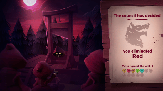 Social deduction game for 4 to 15 players, inspired by Little Red Riding Hood. 3 factions clash: use your unique powers, unmask them or be devoured before the Blood Moon turns against you.
