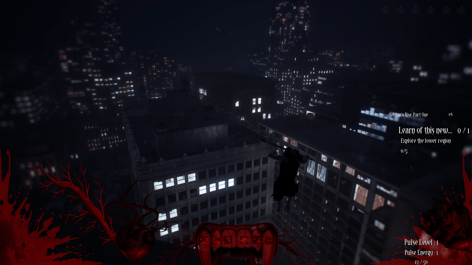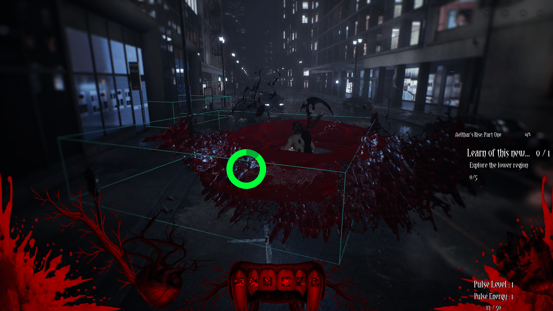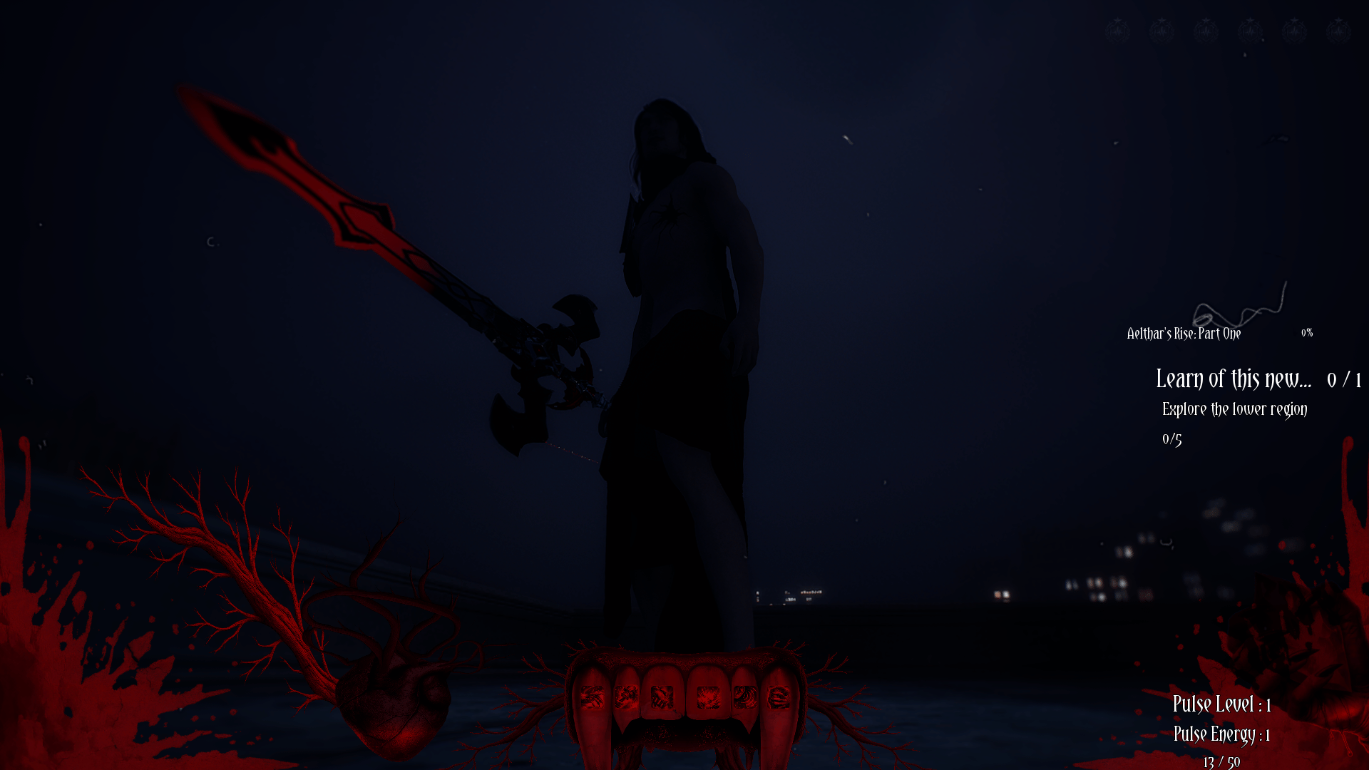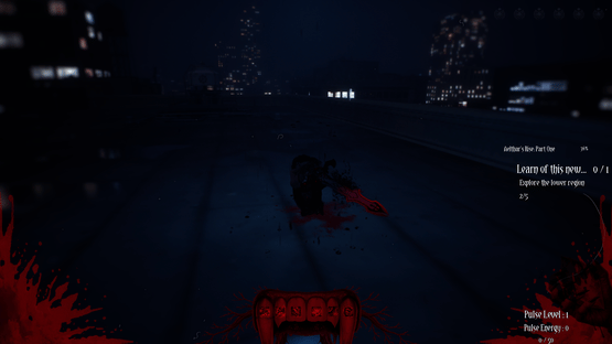 Grim Pulse: The First Blood is an ARPG that follows Aelthar, an ancient vampire who awakens 9,743 years after being sent to his Eternal Slumber within a modern city locked in a dreamlike state of blood, control, and forgotten history. As he dismantles vampire Covens embedded within towering skyscrapers, Aelthar uncovers a hidden hierarchy known as the Vampire Council, and the truth that his resurrection was never accidental. Through combat, exploration/eavesdropping, and fractured memories, he must confront his past, a tragic love named Lisette, and the burden of the First Blood itself.
