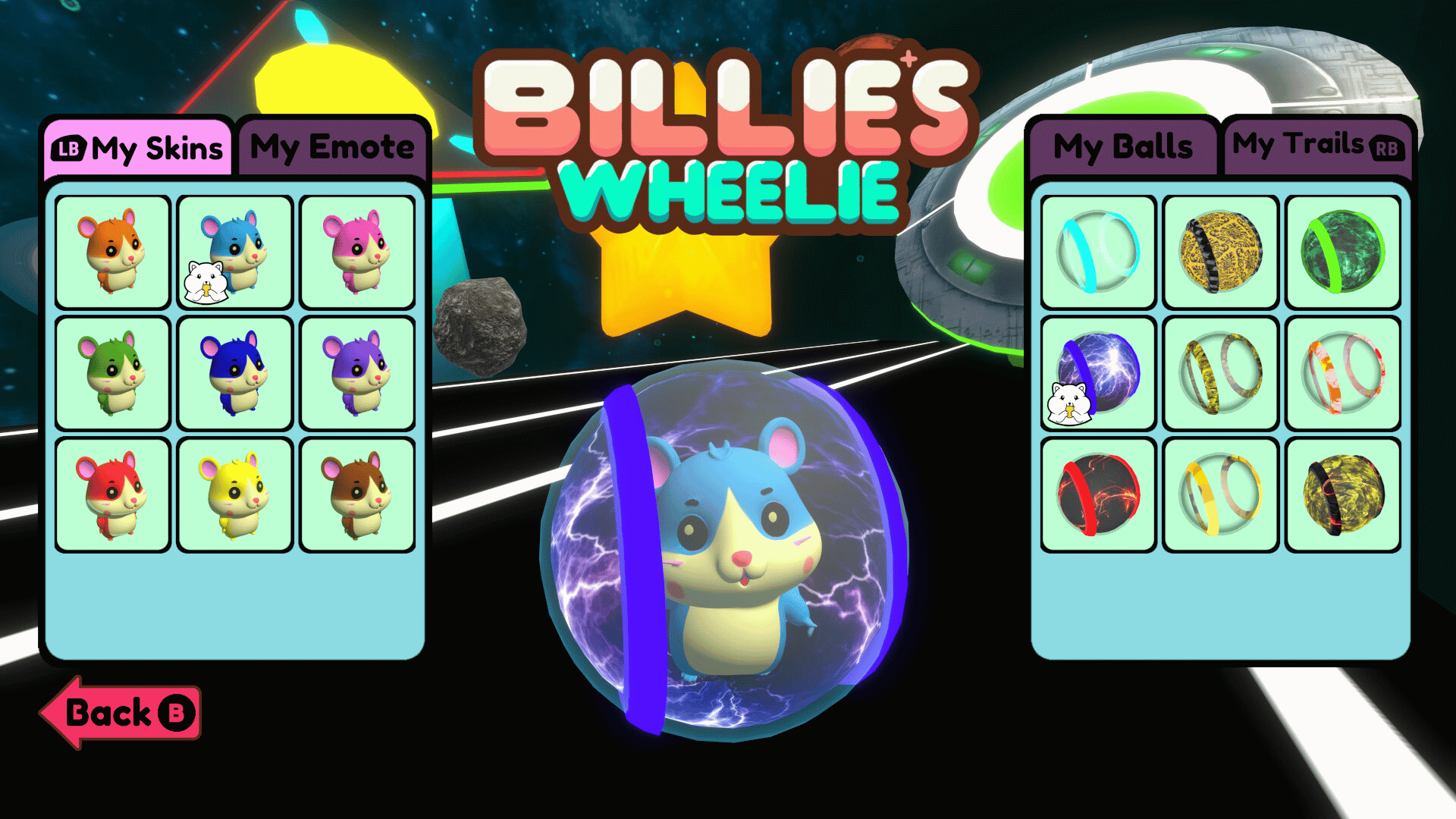 Billie's Wheelie is an adventure racing platformer game, You can play it with up to 8 players Co-op/PvP, Playing as a hamster in his ball trying to beat all challenges, Collecting all cheese pieces for rewards, And beating your friend's time records.