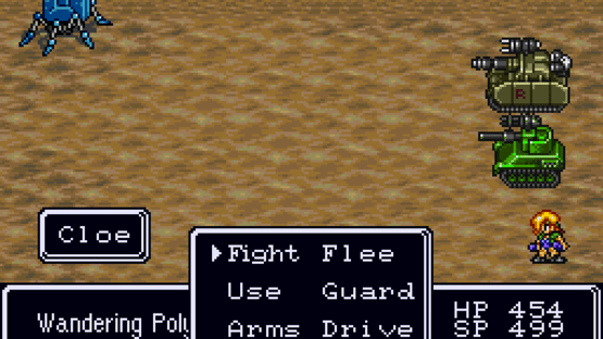 Released in Japan in 1995 it is the SNES remake of original Metal Max. The storyline and the gameplay basics remained unchanged. The remake features enhanced graphics and sound, background pictures for battles (they were black in the original), slightly different locations (more houses in towns, sometimes different layout of the towns and of the world map), and reduced difficulty levels.