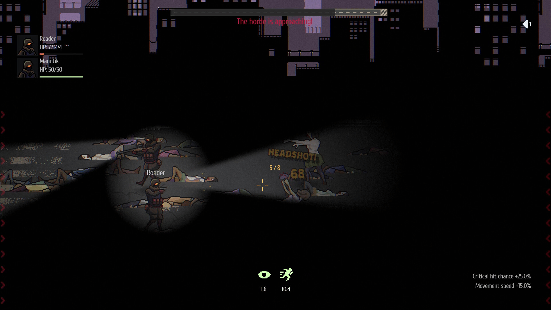 ZEROAD is an endless pixel-art roguelike shooter. Fight through shifting roads and zombie hordes, growing stronger every run. Find unique weapons with modifiers, level up your character, and push further each time – solo or in two-player co-op!