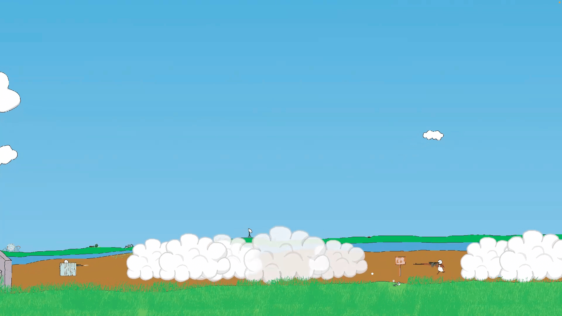 Somewhere online, on a riverbank, a shootout with someone you don't know. A 1vs1 side-scrolling gun shooting. One shot to win or strategies intersect. Use random weapons, obstacles, to defeat someone you don't know. In Friend matches, you can play with someone you know, but please get along well.