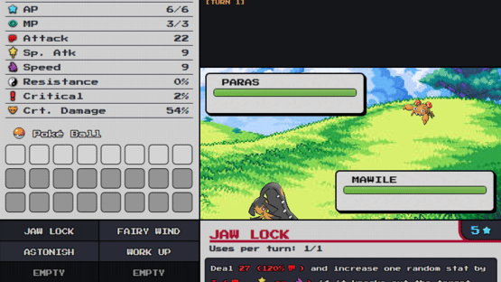 Face wild Pokémon in a challenging turn-based roguelike adventure! Equip items, learn new moves, and upgrade your strategy to survive through 9 dangerous areas filled with wild encounters, events and powerful bosses.