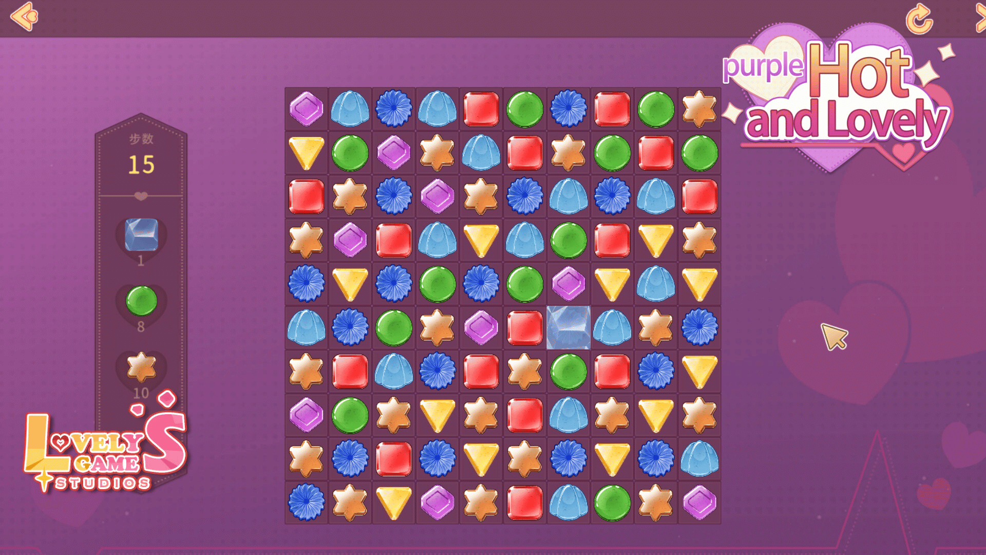 "Hot and Lovely: Purple" uses the mouse to drag the pattern, and every three identical patterns can be eliminated when they are in a straight line. When you eliminate specific targets and reach the required number, you can pass the level and unlock the sweet moments of the girls