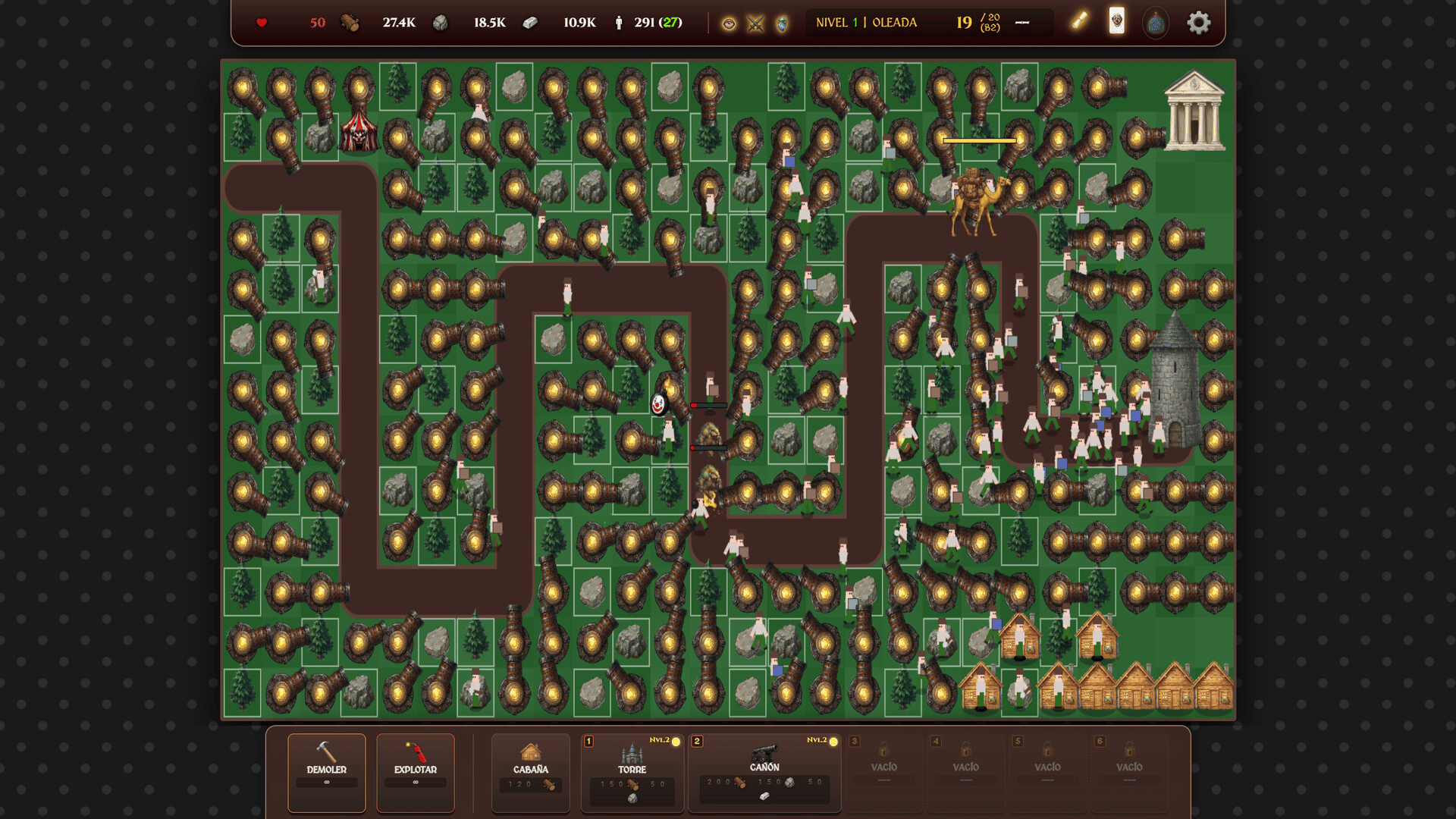 A strategic tower defense game where management is key. Build houses to generate villagers, gather resources, and erect an impenetrable defense. Withstand increasingly powerful waves of enemies and prevent them from destroying your tower.