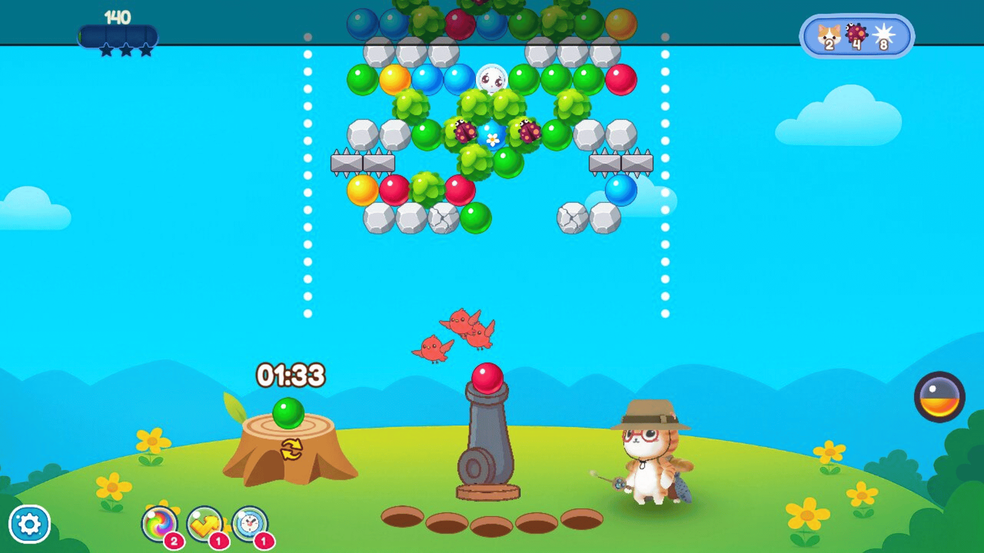 Shoot the bubbles and match 3 of the same color. A beautiful classic with kitties!