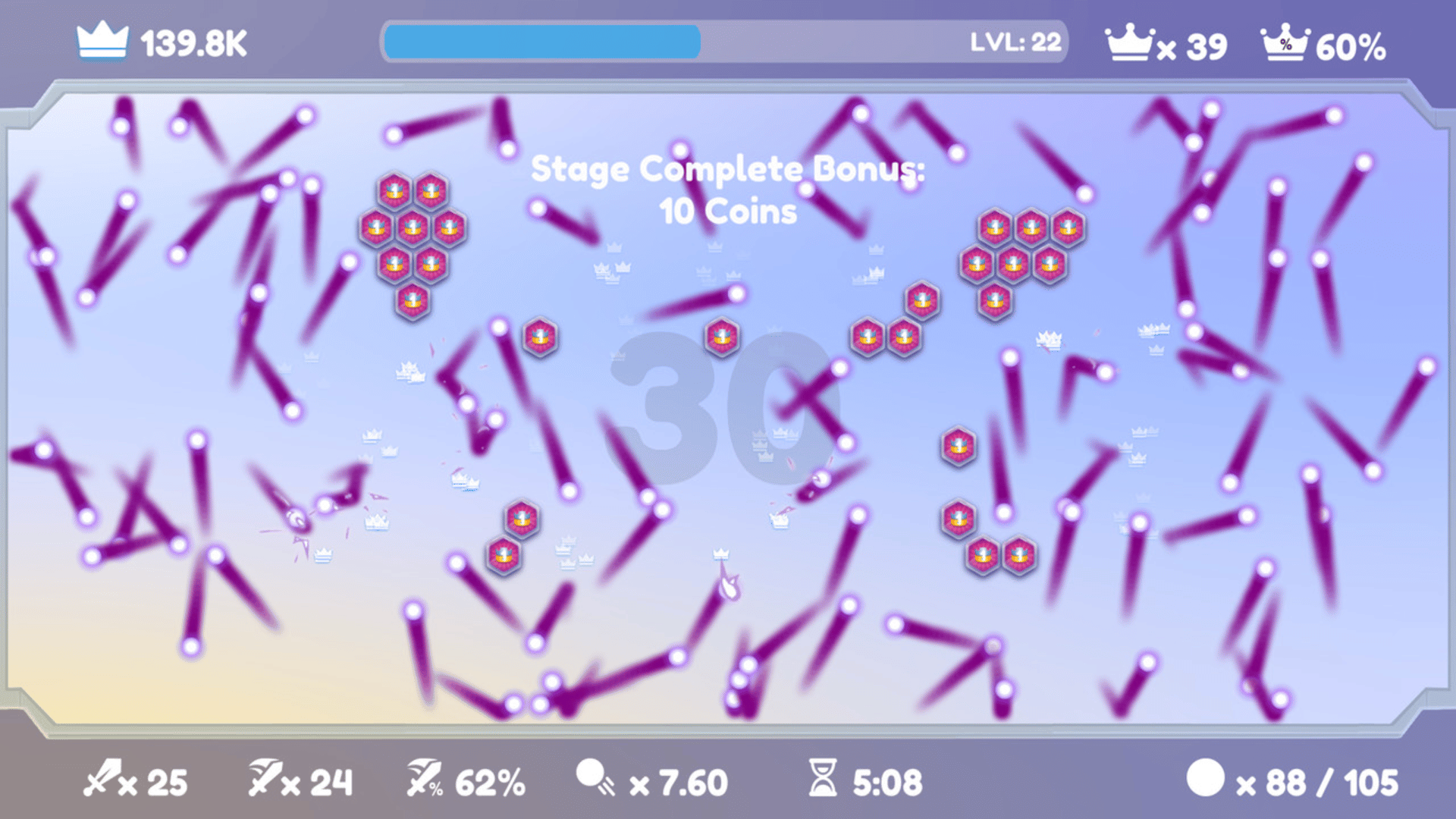 Strategically power up to clear the field as efficiently as possible in a brick breaker about quick thinking!