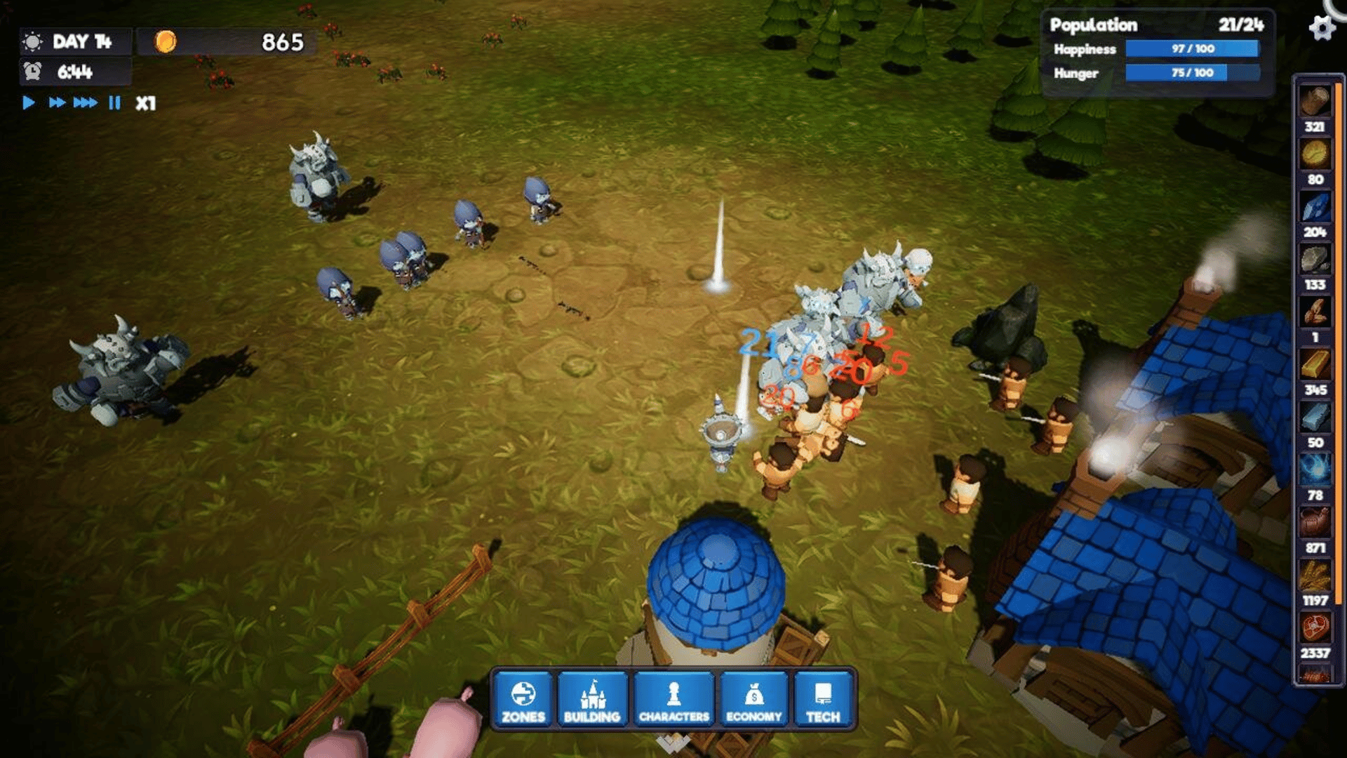 Build your town, feed and arm your settlers and watch out for the undead coming at night! Survive as much as you can.