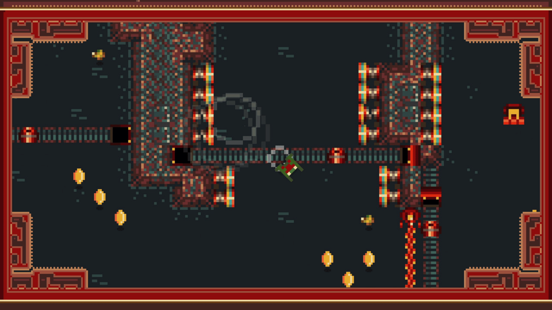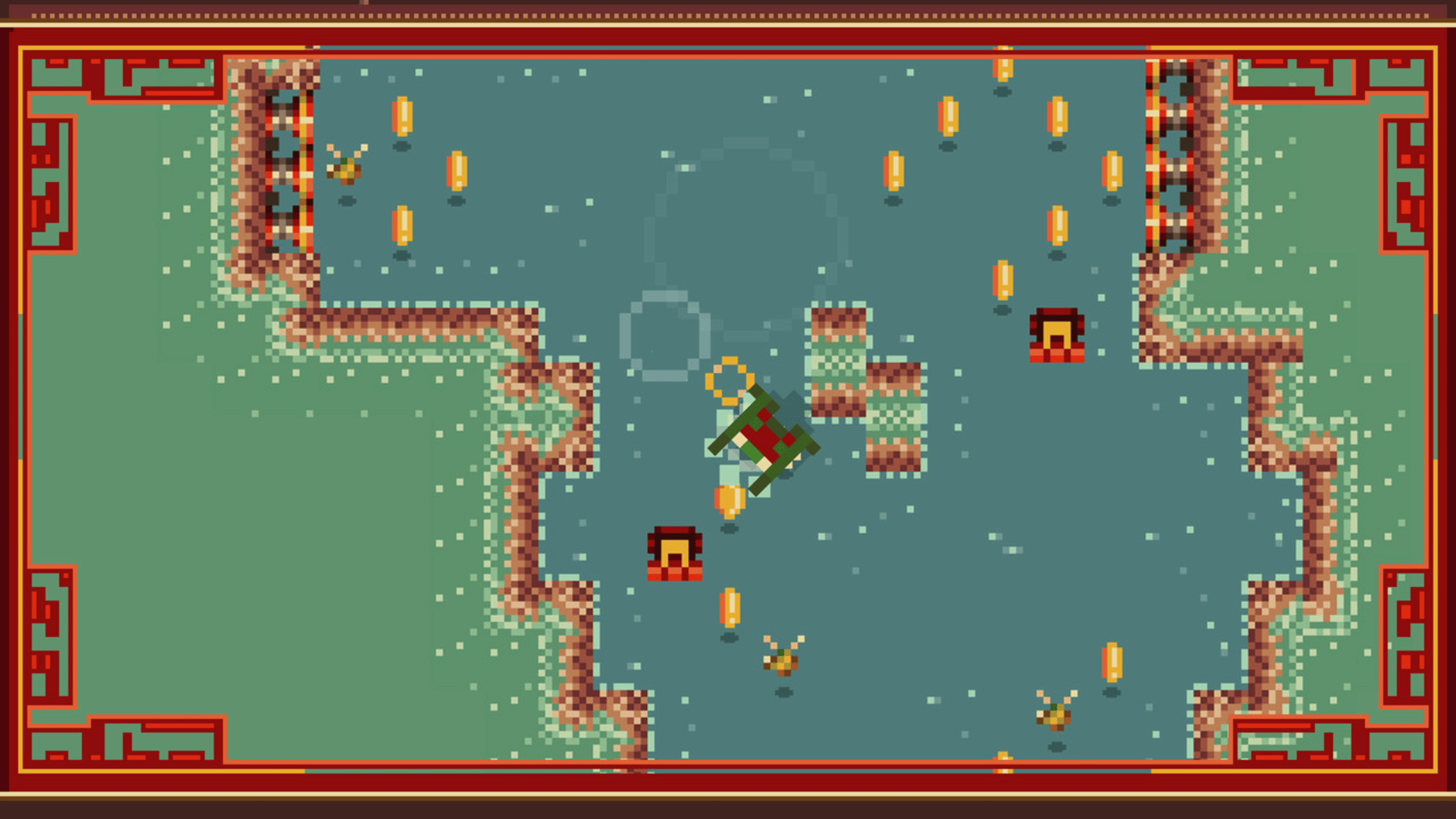 Direction Quad is a 2D action-adventure presented in top-down pixel art style. Take the role of young Quad as he hops through the swamp in any diagonal direction, collecting coins and bugs along the way. The objective is to get Quad from his starting lily pad to the finish line of each stage without colliding with the terrain or any treacherous traps. As you advance, the mazelike levels get more complex! Use bumpers to ricochet along the best lines, hit switches to open new paths and keep Quad from kicking the bucket! Replay stages as many times as it takes, but beware, there is greater danger lurking in the swamp than even the Wize Toad may realize!