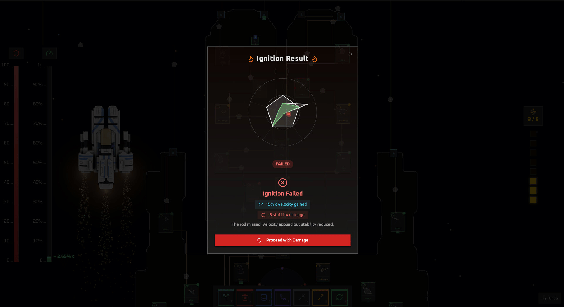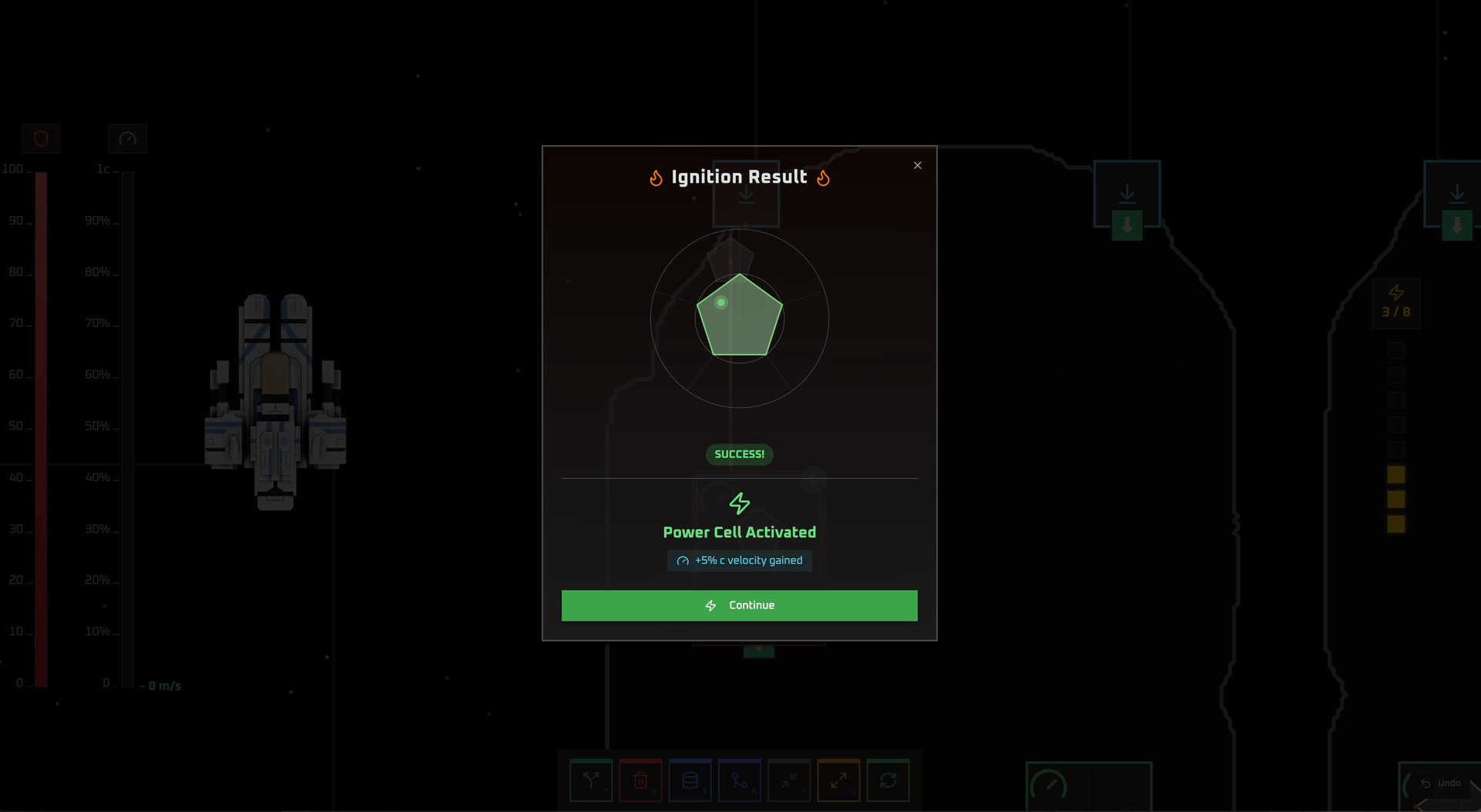 A minimalist optimization game about reaching the speed of light. Build an experimental engine that runs off galactic dust to accelerate your ship to impossible speeds. Match dust signatures carefully and manage your energy to avoid Rapid Unscheduled Disassembly!