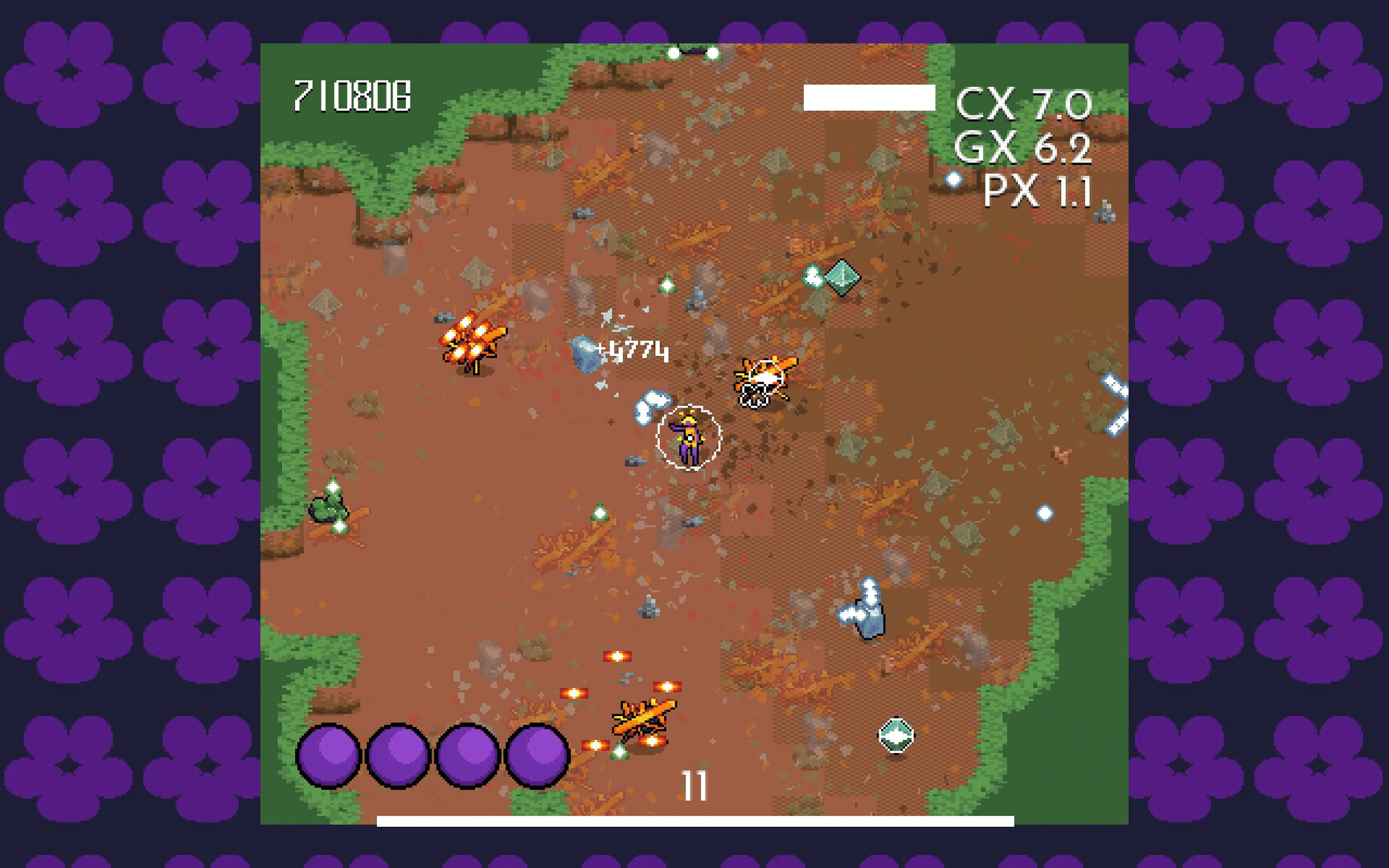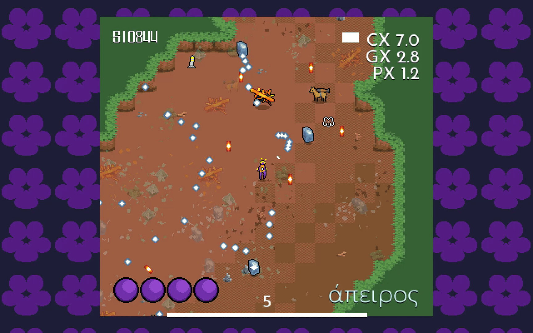 Violet Impetus is a bullet-hell arcade melee 'em up set in a series of (lightly) procedurally-generated arenas. Drop into different biomes to rid the world of Æris—the demiurge, petrificate & fractured. Its other children just won't see things eye to eye.