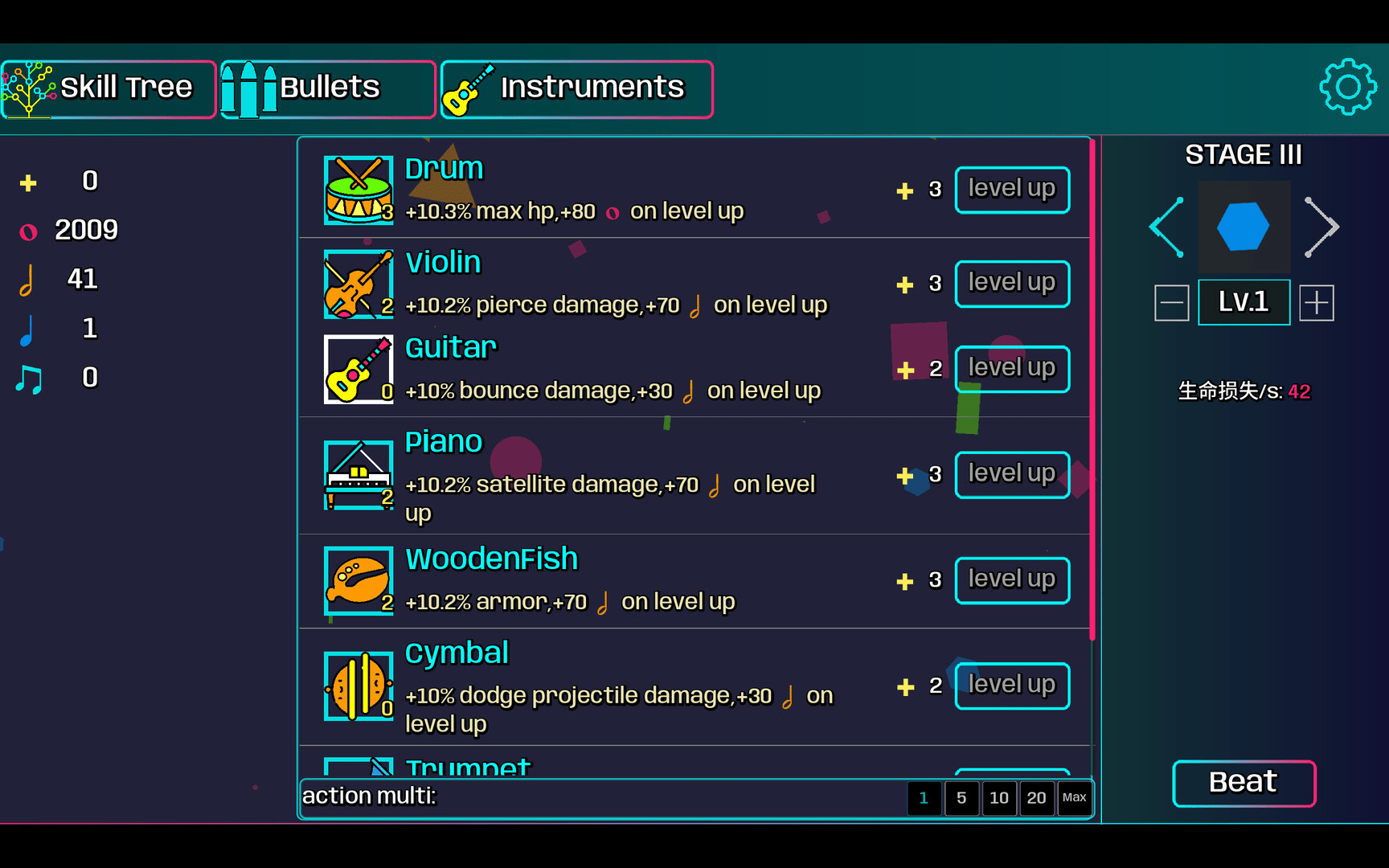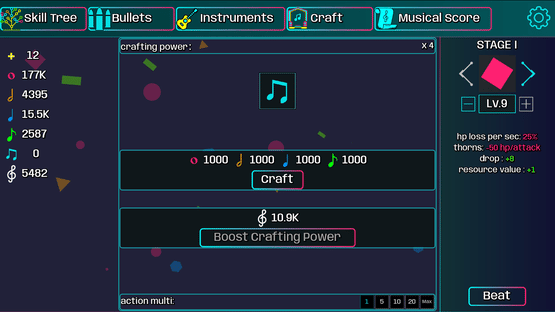 Beat Shapes is a simple incremental bullet heaven shooter game. Defeat enemies of various shapes to collect resources, which you can use to upgrade the skill tree, unlock new bullets,upgrade instruments and explore other upgrades. Grow stronger and challenge tougher enemies and bosses.