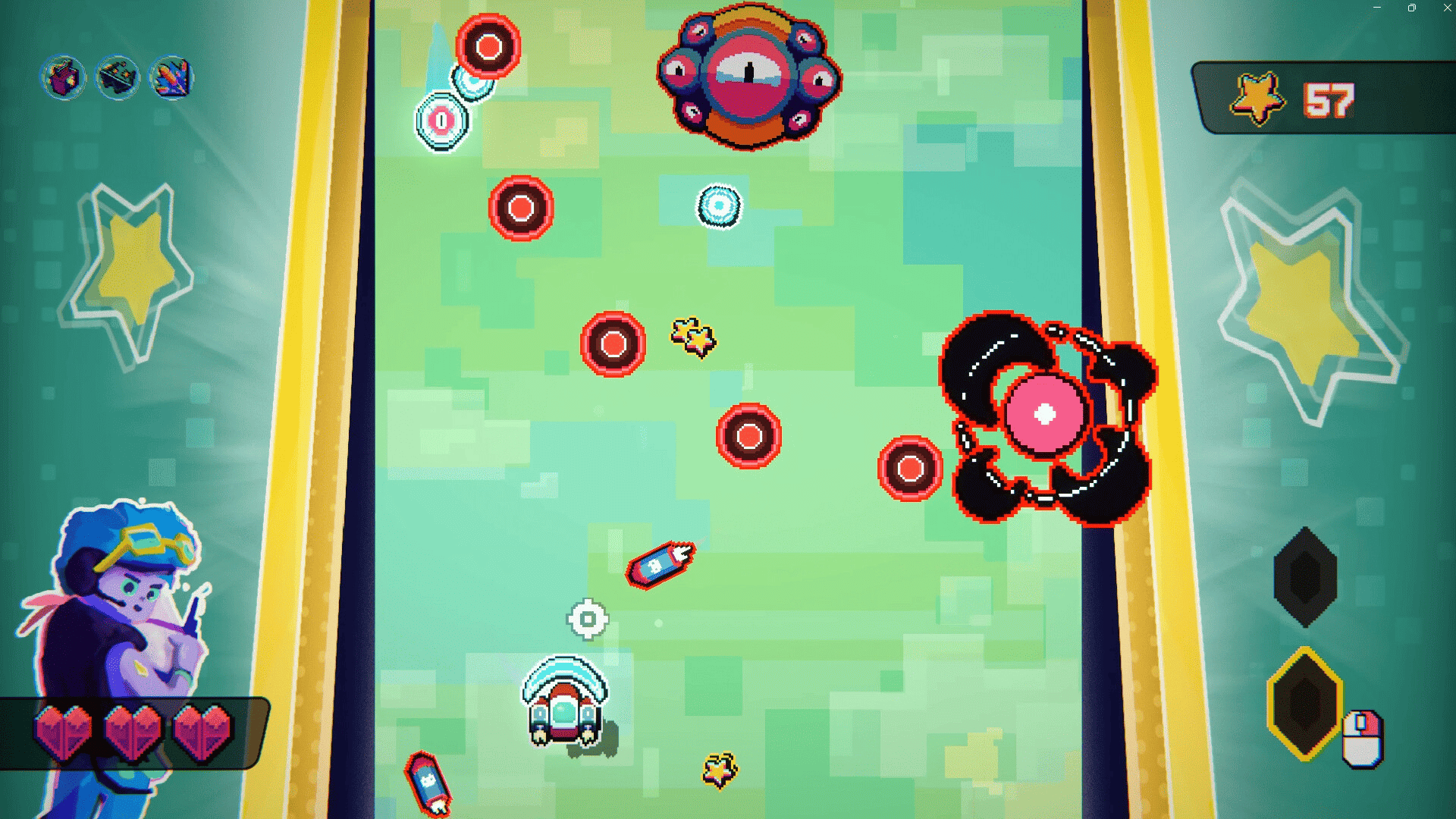 Irradiant Skies is an arcade roguelite blending brick-breaking and bullet-parrying combat. Reflect enemy attacks, chain powerful upgrades, and master unique ships as you ascend through waves of enemies.