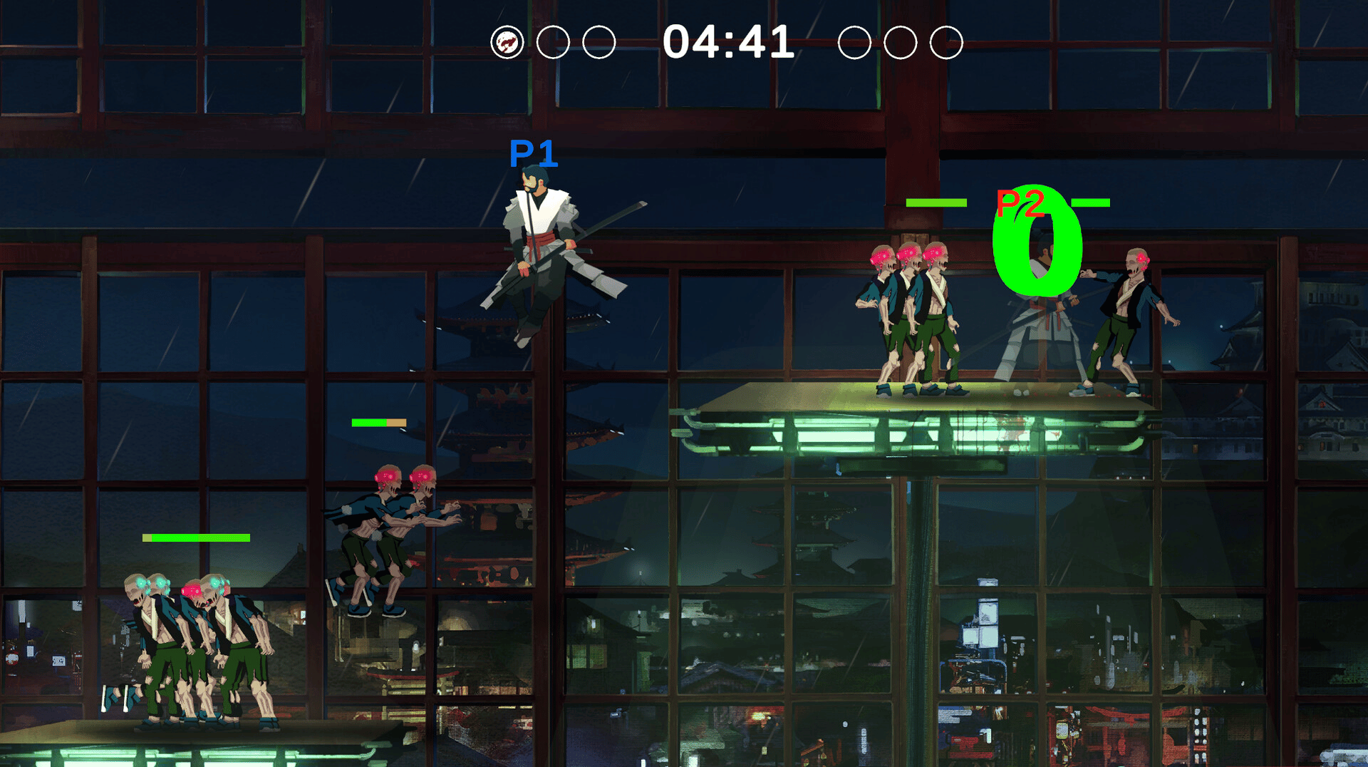 Fight in intense battles against each other in an arena where hordes of cyber-zombies and a final boss add chaos. Prove that you are the strongest! Ready for the challenge?